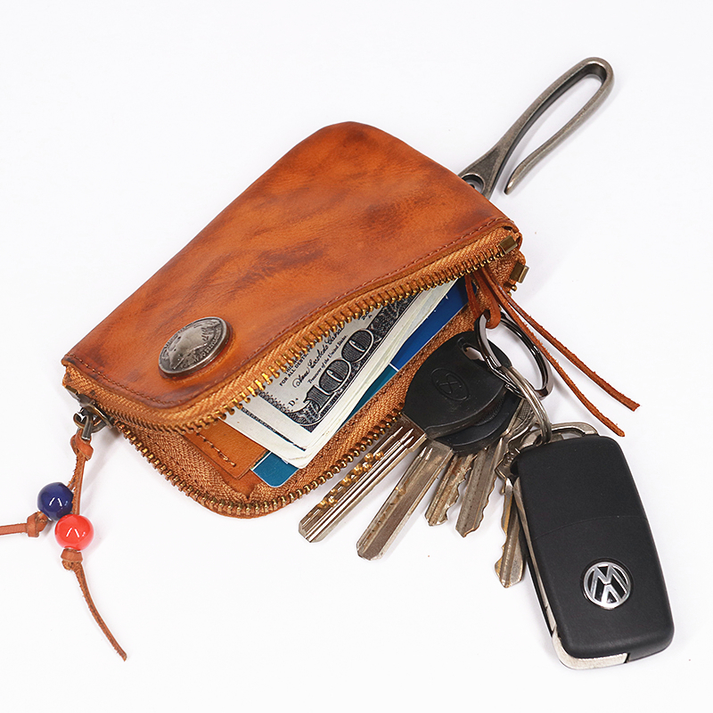 Multi-function retro header skin skin short zipper male waist hanging portable car coin key pack coin pack