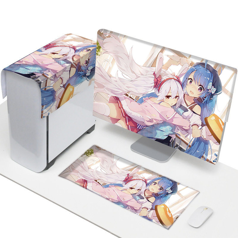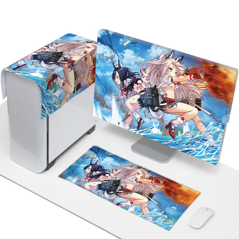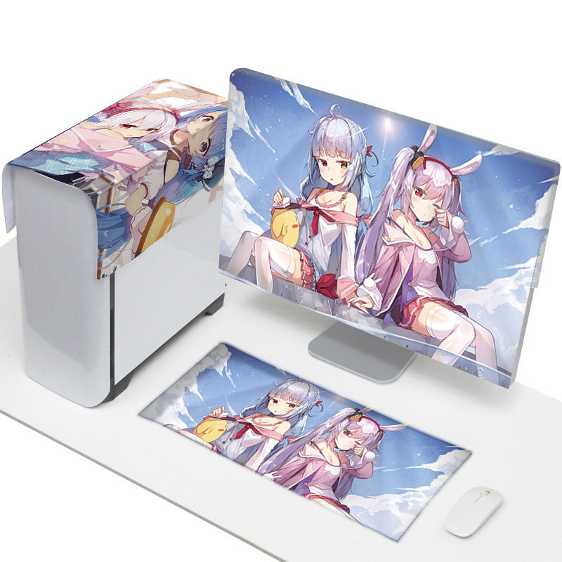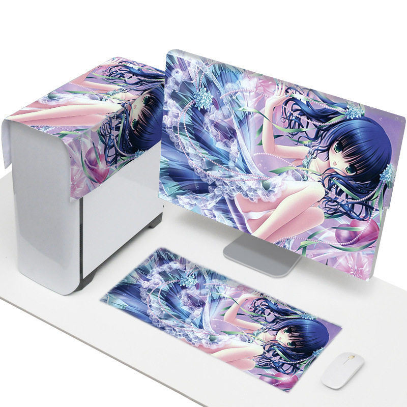 Desktop computer dust cover main box cover cloth monitor keyboard dust cloth set screen fabric shade gray girl