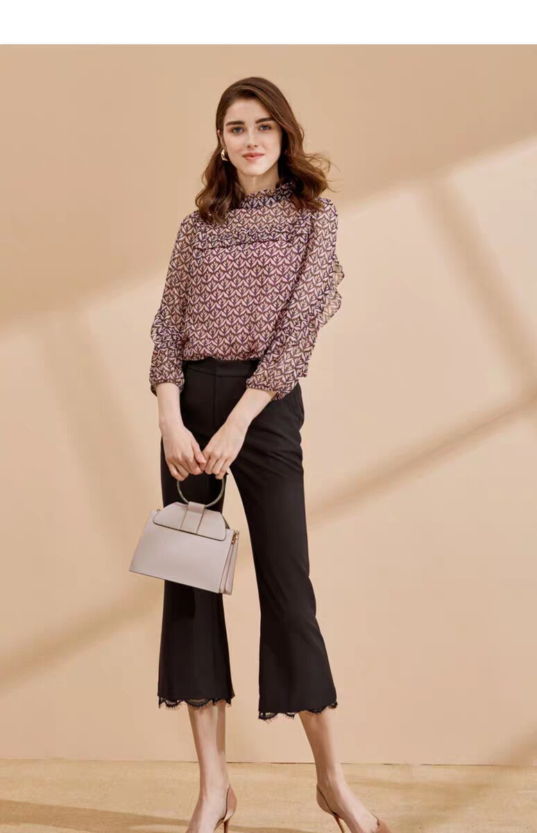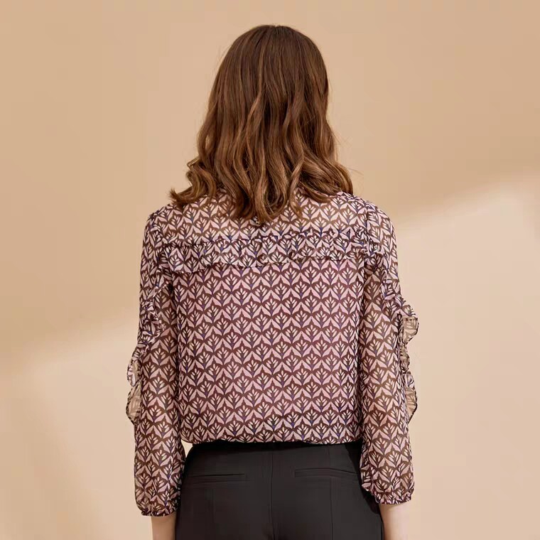 Koletil women's clothing 2021 spring new fairy sweet small stand collar printed slim top K1AHF235000