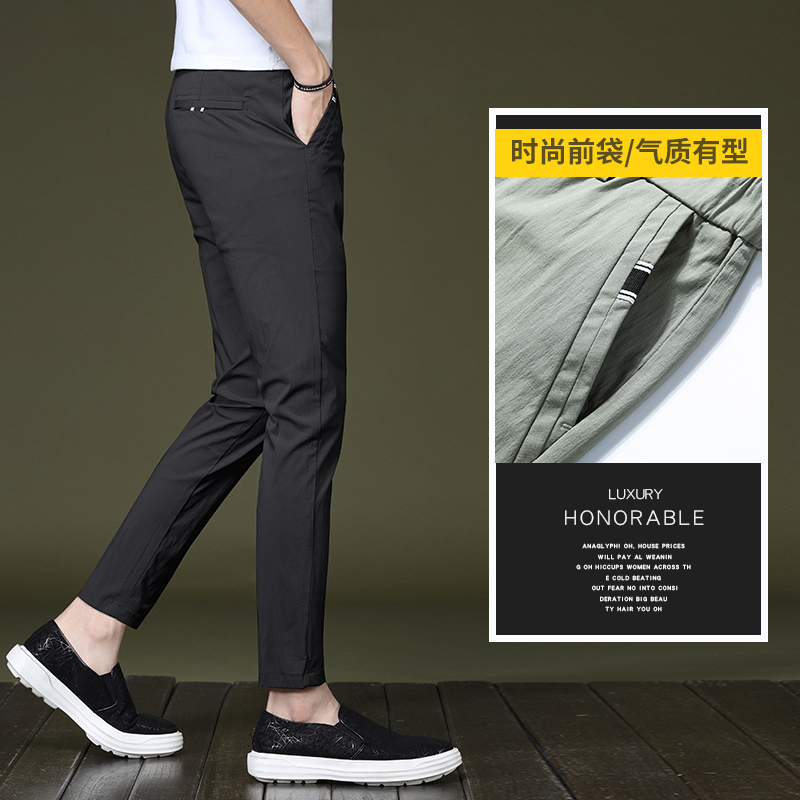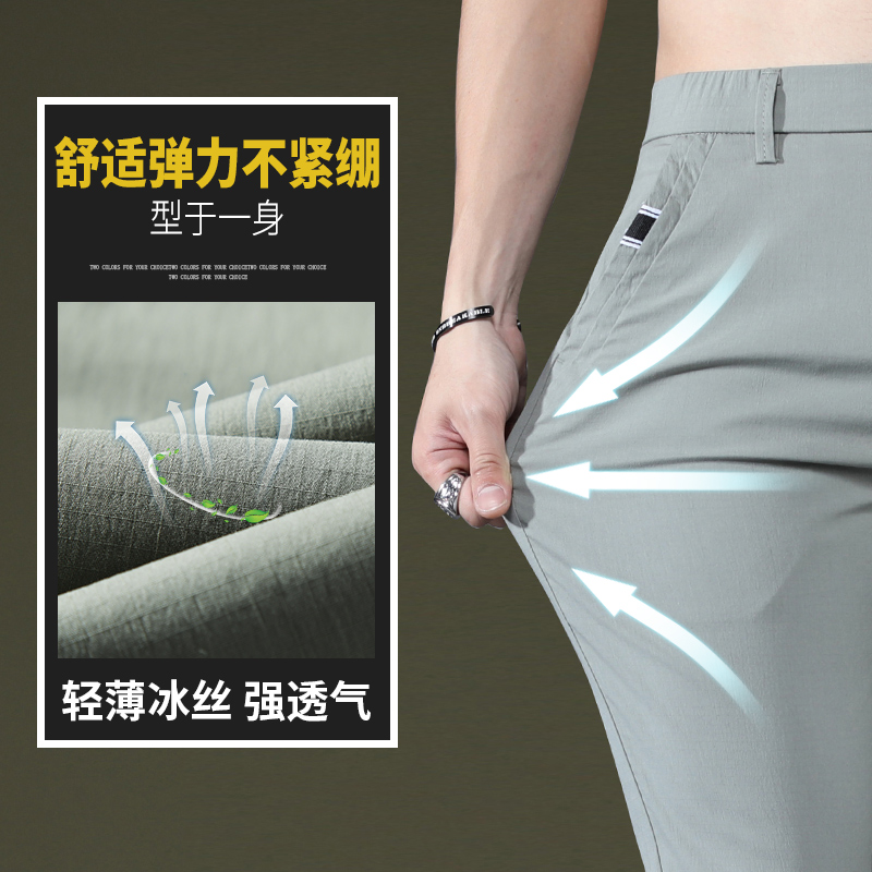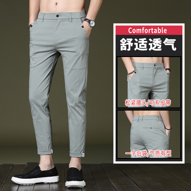 Summer Ice Silk Ultra Slim 9 Pants Men Casual Pants Business Positive Clothes to Work Western Pants 90% West Pants