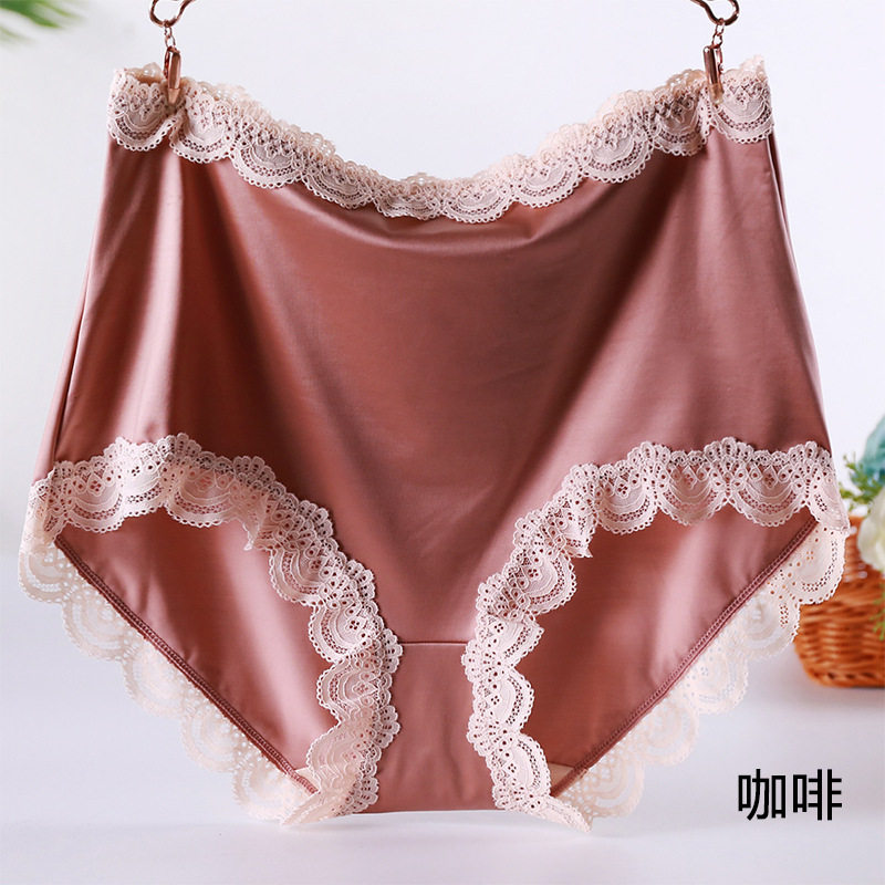 New silk slide high waist 110 - 240 kg high - grade lace satin large size panties female fat MM200 delicate