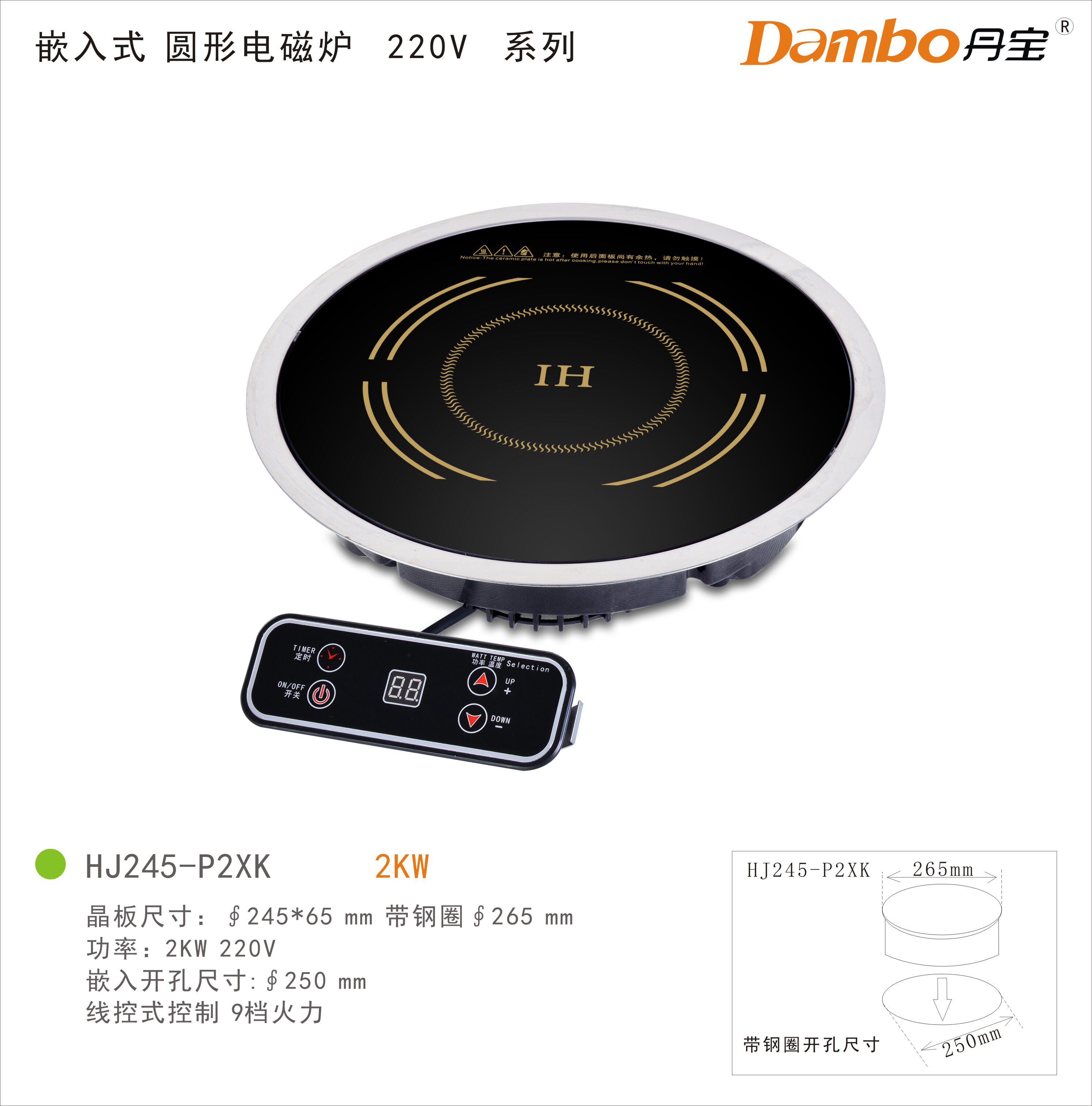 Dambao commercial induction cookery 2000w induction cooker mechanism embedded 2KW245 crystal board fire boiler