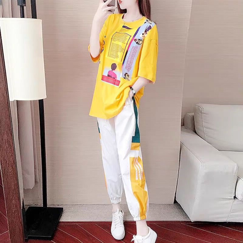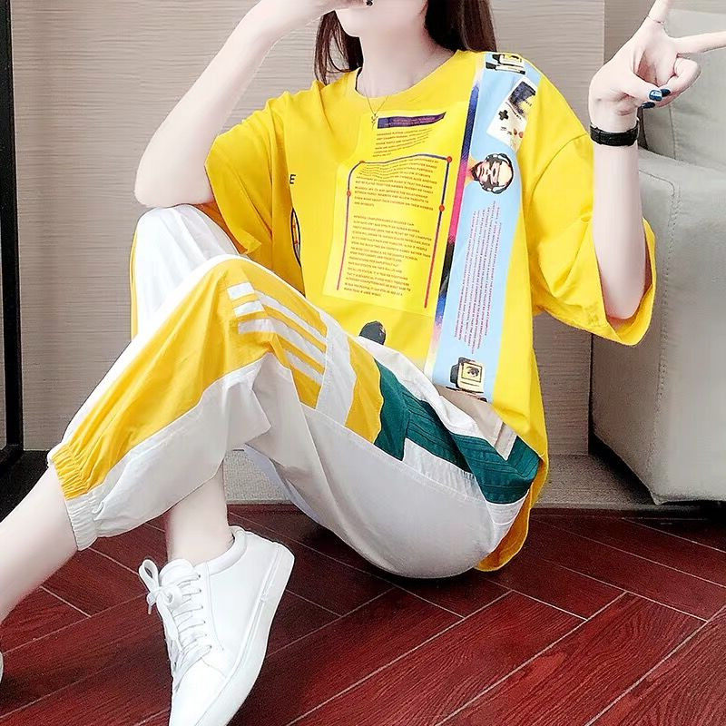 Pregnant women's summer suit outgoing fashion models 2023 summer thin Korean edition relaxed leisure sports two pieces