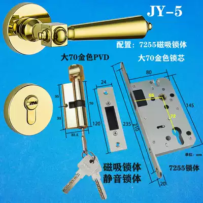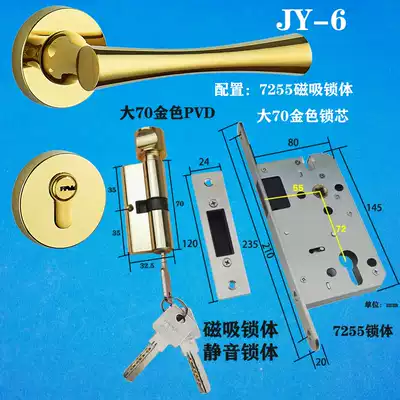 Modern golden magnetic door lock inner door zinc alloy mechanical lock key two-piece brushed universal flat opening hinge door stopper