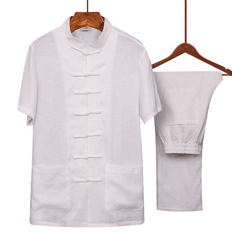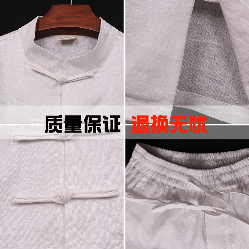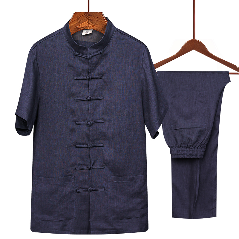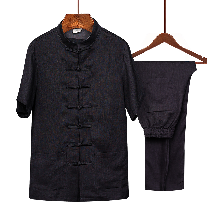 Pure Hemp Short Sleeve Shirt Suit Dad Men's Clothing Middle Aged Tang Loaded Men China Wind Linen Grandpa Clothes Summer