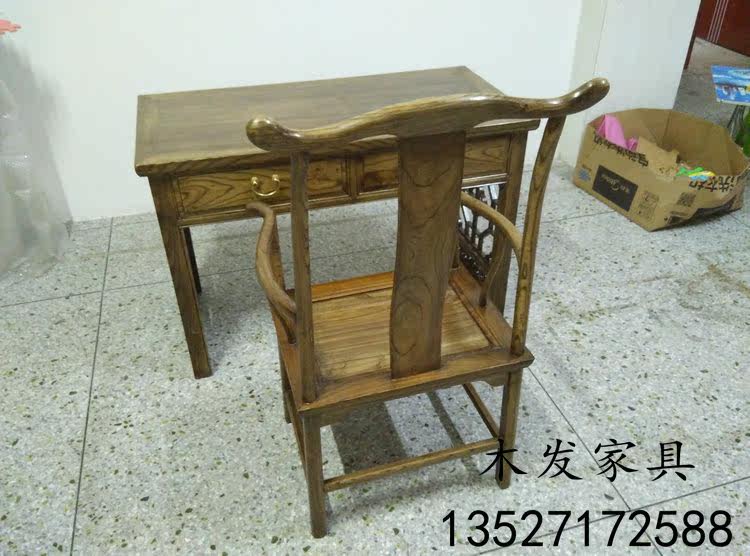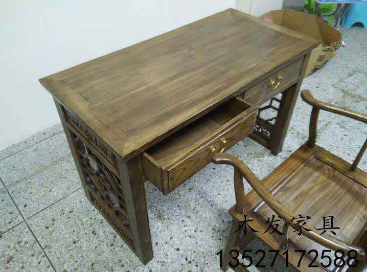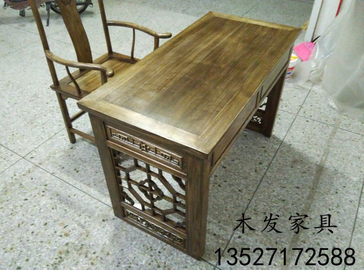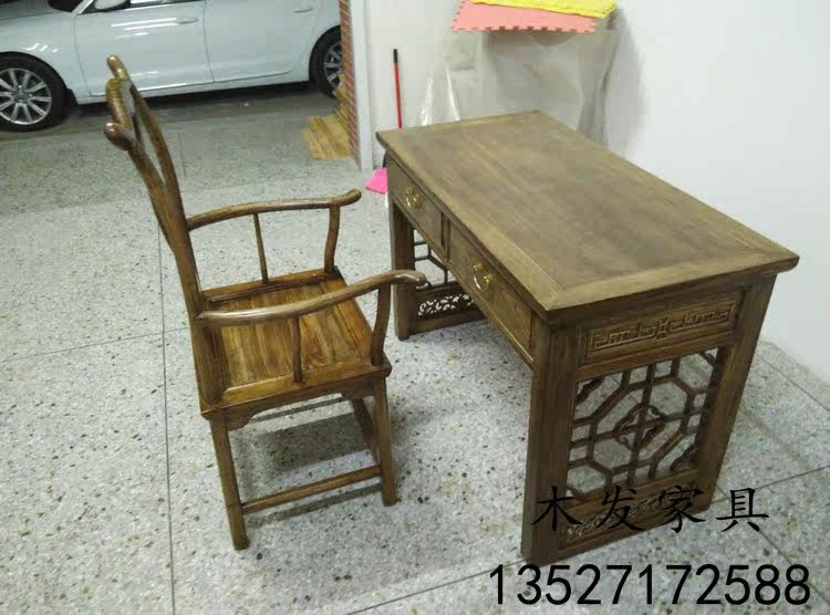 Solid wood Chinese-style small apartment desk old elm simple computer desk study calligraphy desk children's desk and chair combination