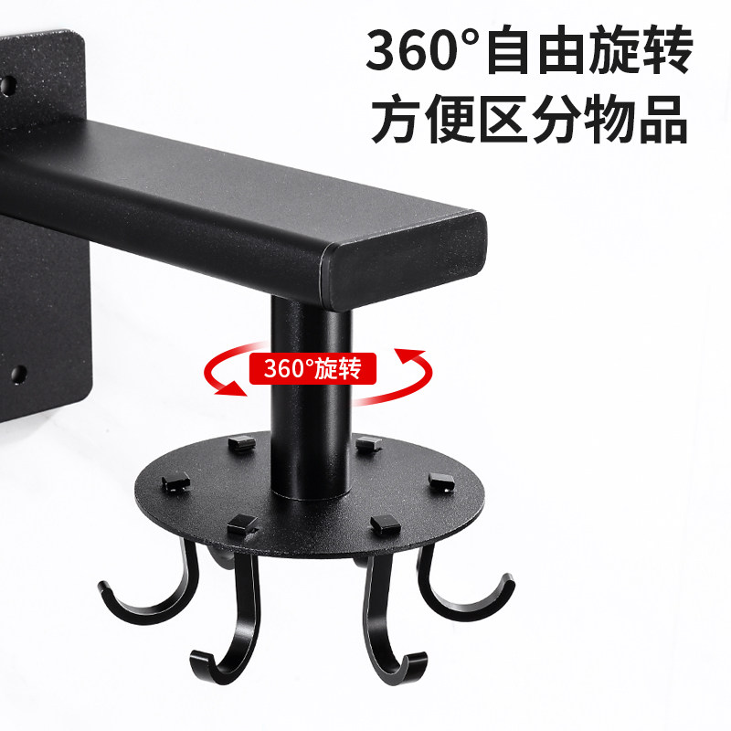 Punch-free kitchen wall storage shelf rack rotating telescopic hook spatula spoon multi-functional wall-mounted artifact