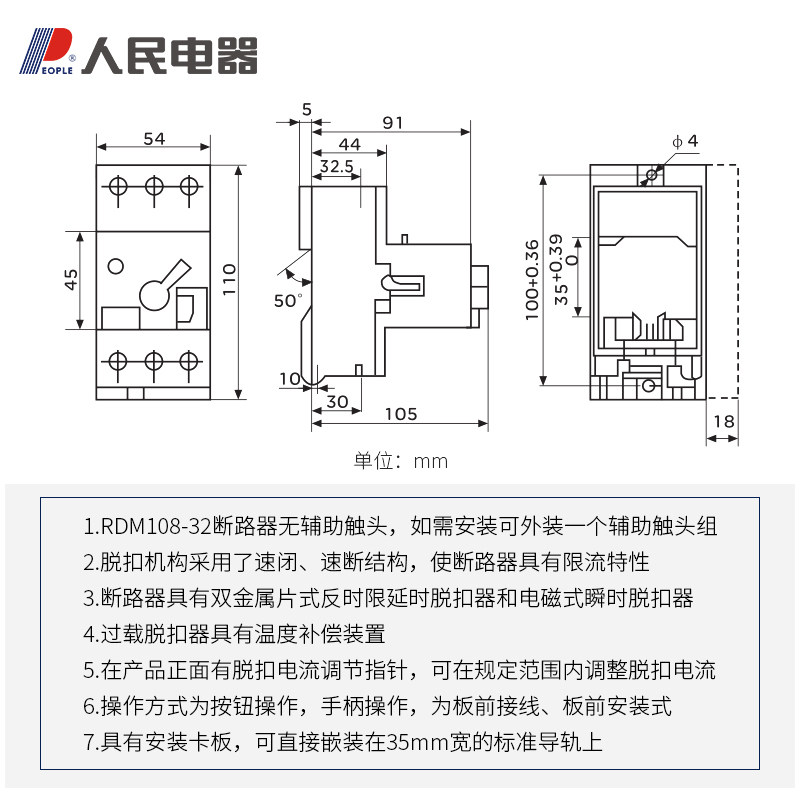 RDM108-32 plastic shell breaker 3P People appliances RDM108-63 adjustable current motor protector