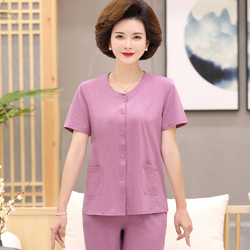 Huayouyuan mother pajamas female Xinjiang cotton loose middle-aged and elderly short-sleeved home clothes cardigan two-piece suit