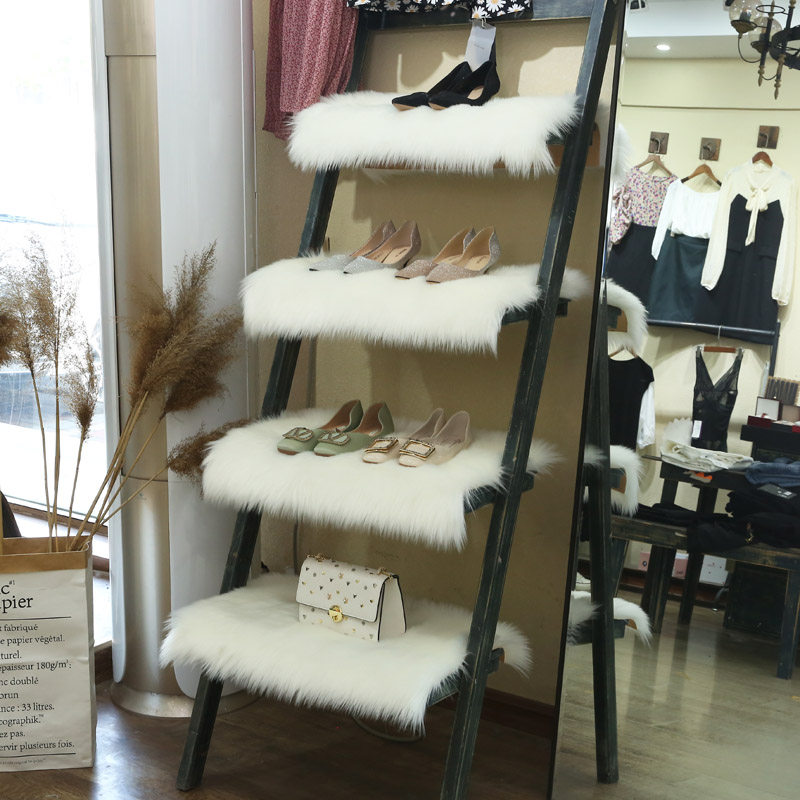 White Plush Carpet Clothing Shop Shoe Rack Mat stand Long hairy pad shelves Showcase Imitation Wool Counter Shop Windows