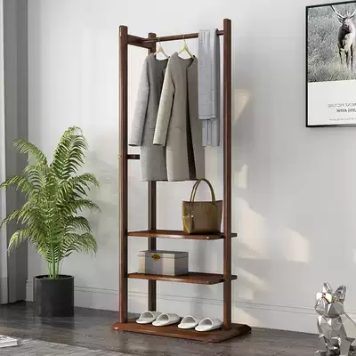 Nordic ins hanger Bedroom walnut solid wood coat rack floor-to-ceiling modern simple household storage shelf combination
