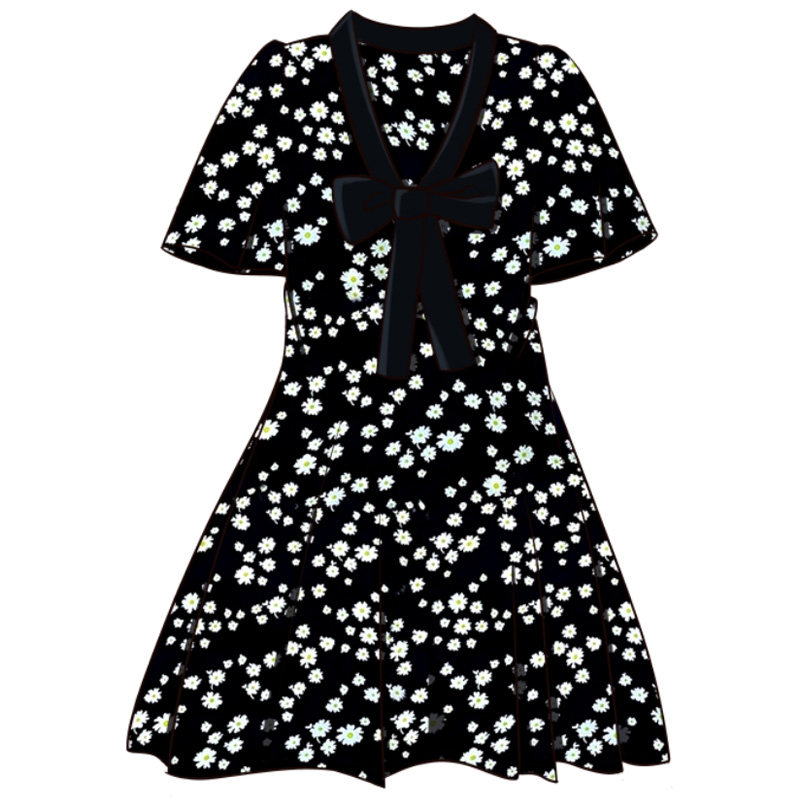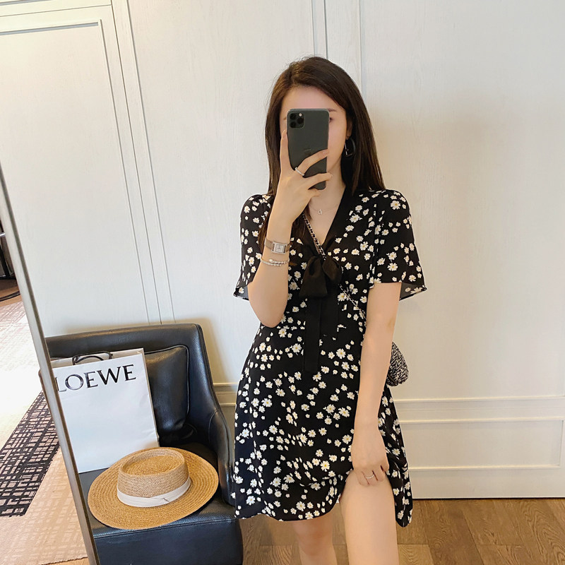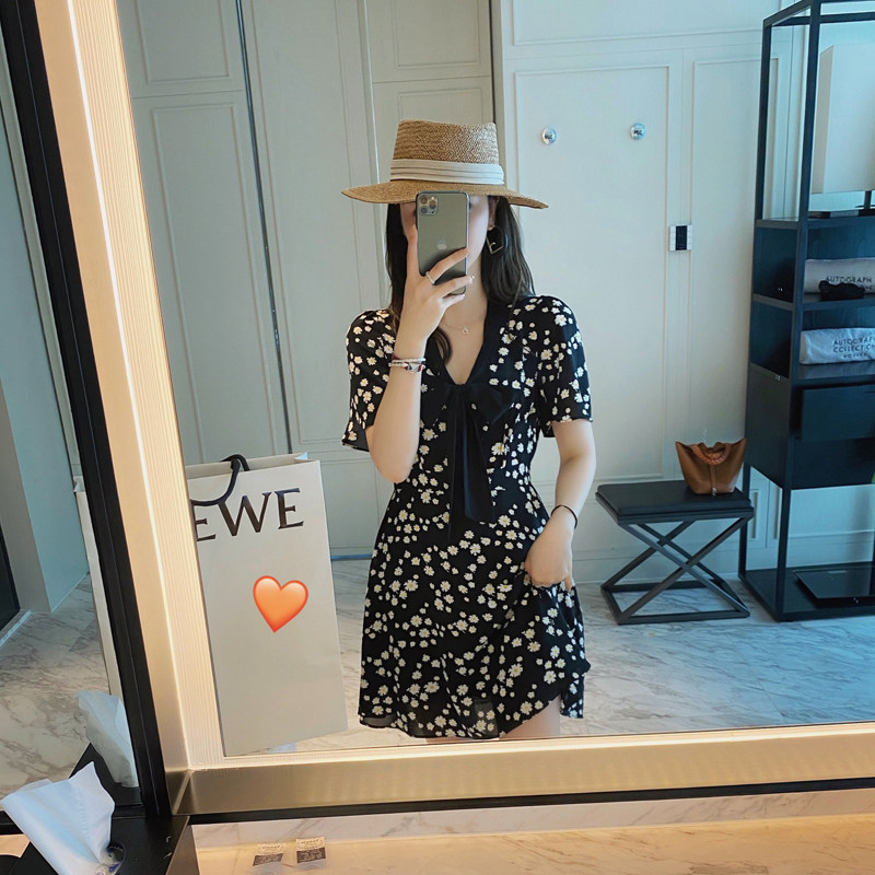 2020 summer new women's large size black daisy skirt can be sweet or salty French niche thin dress