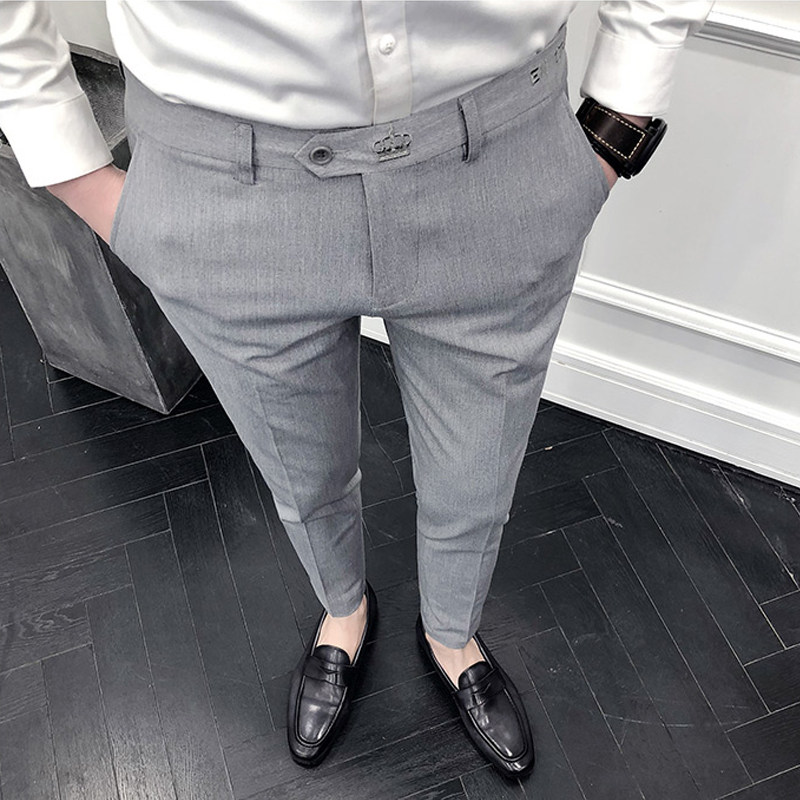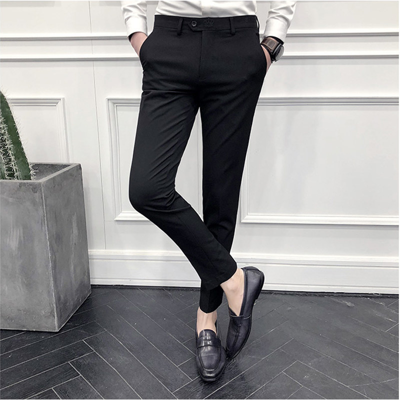 Large size business casual trousers hair stylist elastic pencil pants men's trousers Korean version slim nine points suit trousers