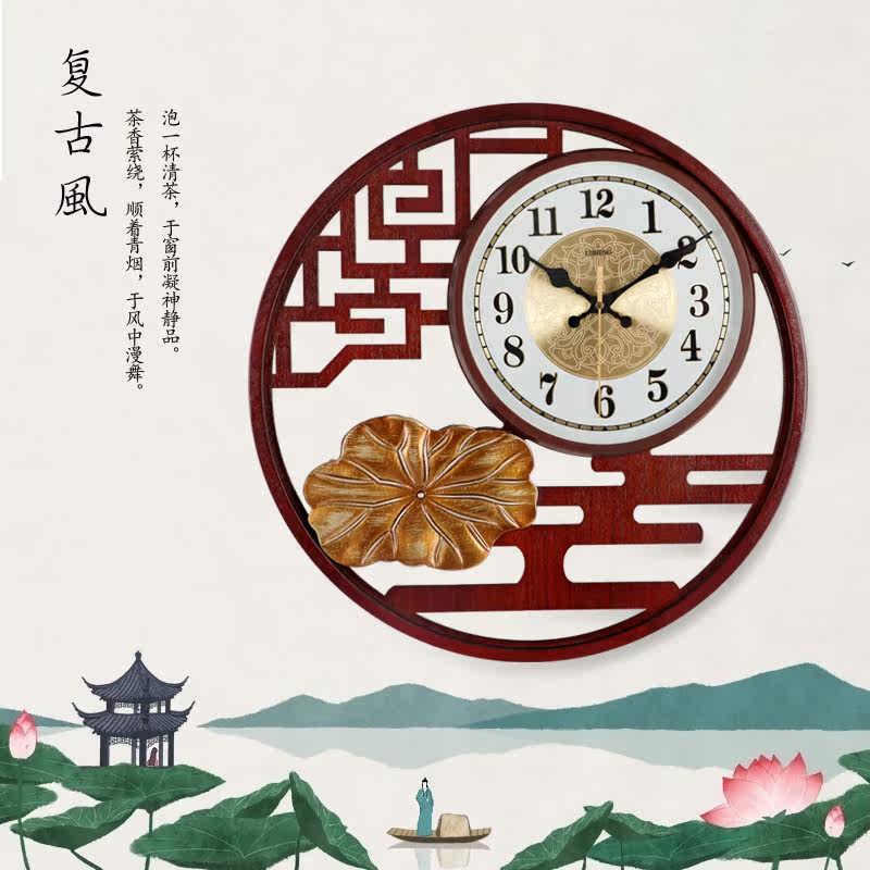 Chinese style retro wall clock extremely simple household fashion creative watch mute movement new atmospheric art quartz clock
