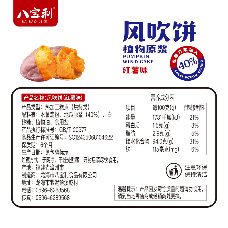 8 Paoli Breeze Blowing Cake 388g Sweet Potato Taste Sweet Potato Whole Box Ground Melon Cake Pancake Snack snack Snack Casual
