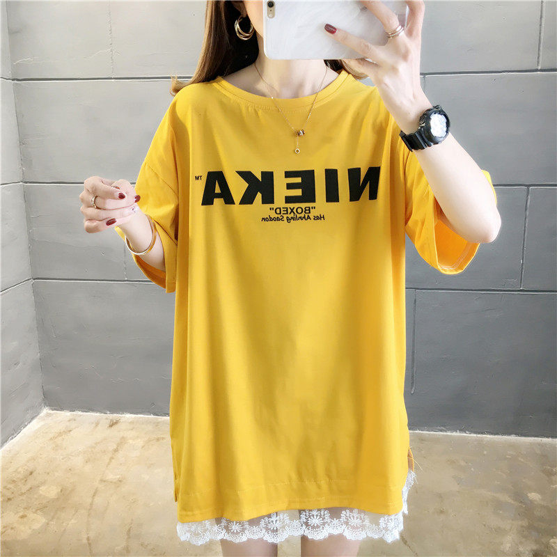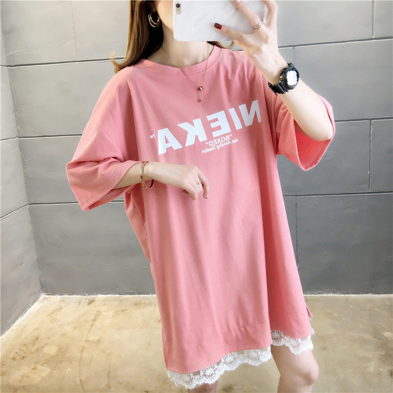 Pregnancy women's dress T-shirt Summer 2020 new short sleeves Long version lace splicing Korean version of pure cotton pregnant woman Nehitch summer