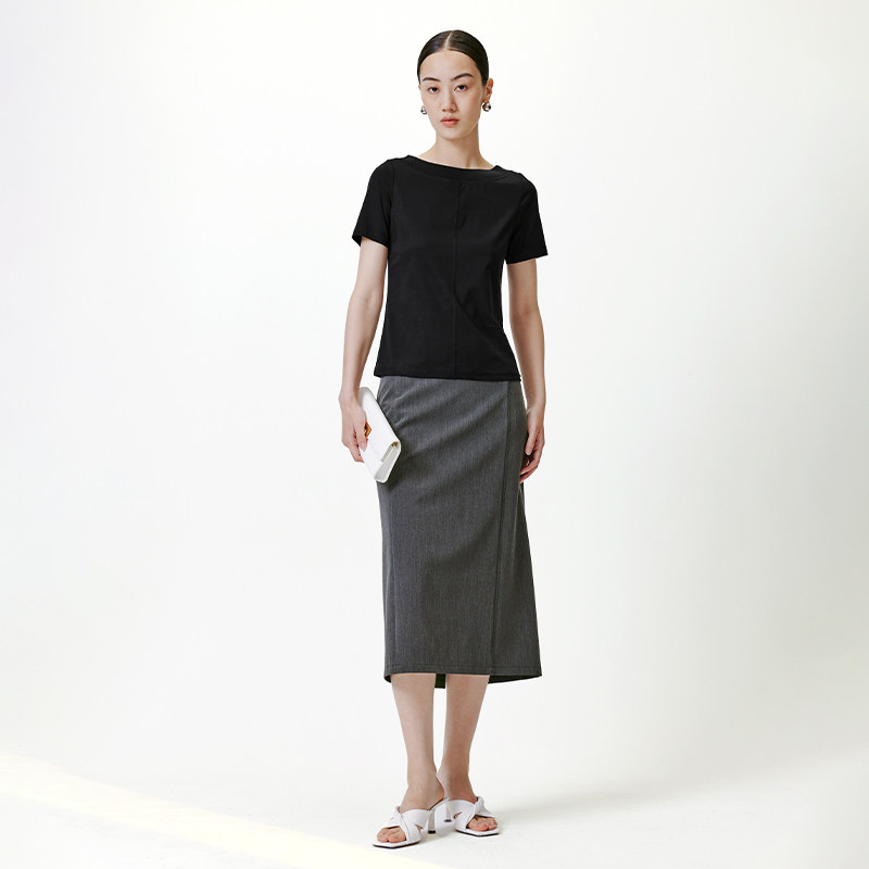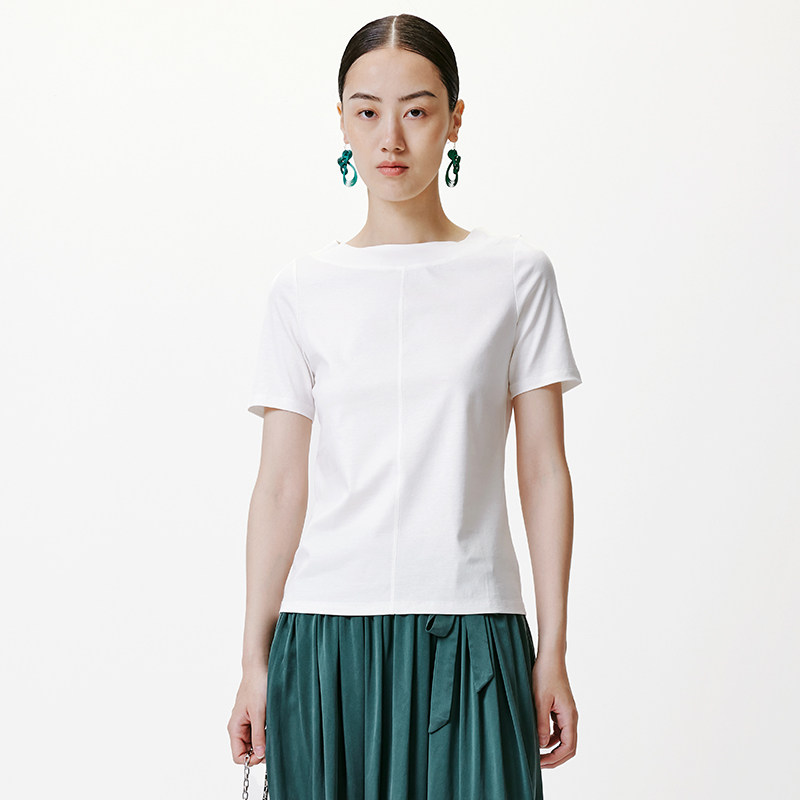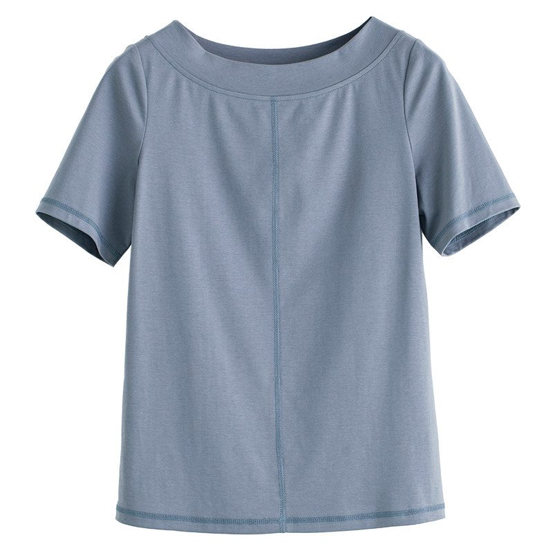 Templan also Wen of the Tianshan Street Long - chon cotton base T - shirt " simple leisure boat collar with short sleeve tops and summer woman