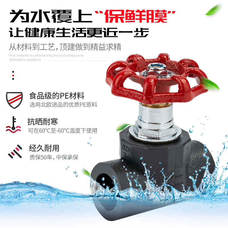 Top-built PE pipe fittings 4 points 6 points 1 inch HDPE lift stop valve 63 75110 valve joint accessories