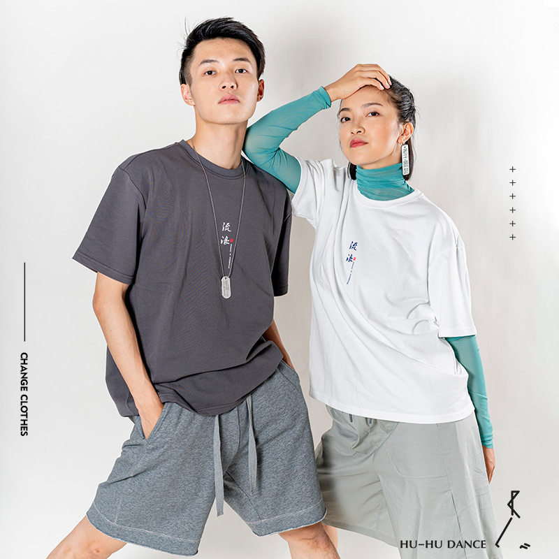 S-09 dance practicing short sleeve white T-shirt round collar printing 100 hitch for men and women with the same loose all-cotton practice-Taobao