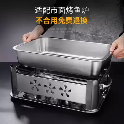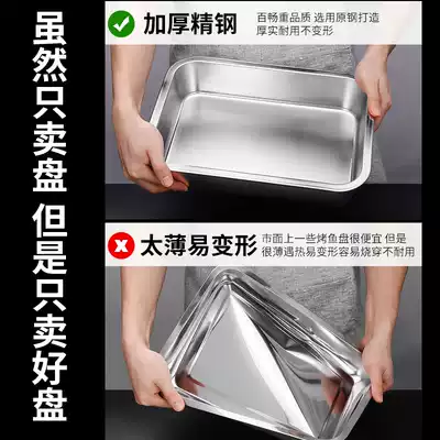 Stainless steel tray rectangular square plate deep dish household commercial fish tray dining room served barbecue barbecue iron plate