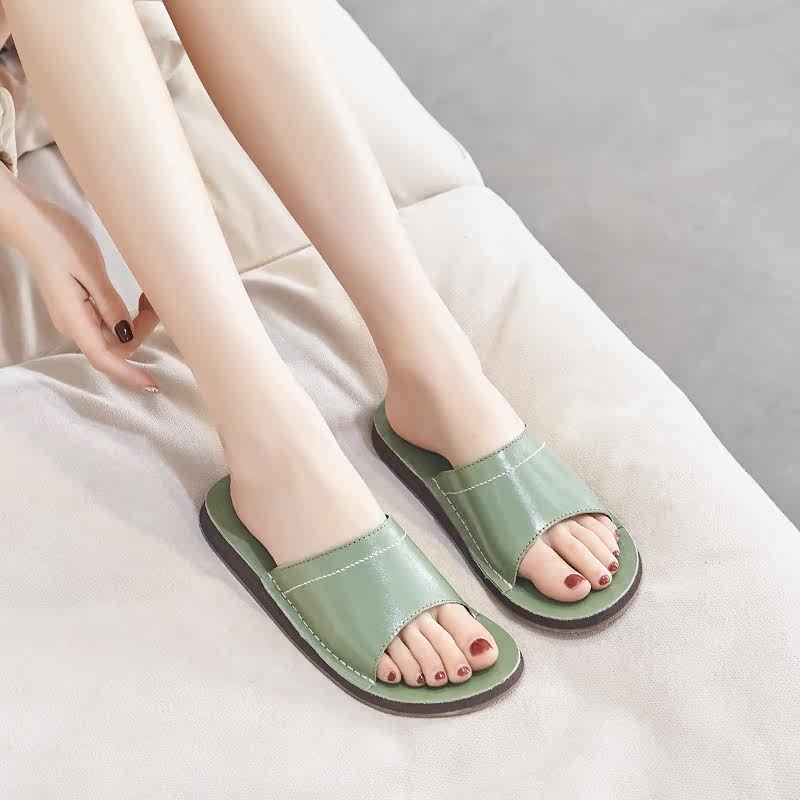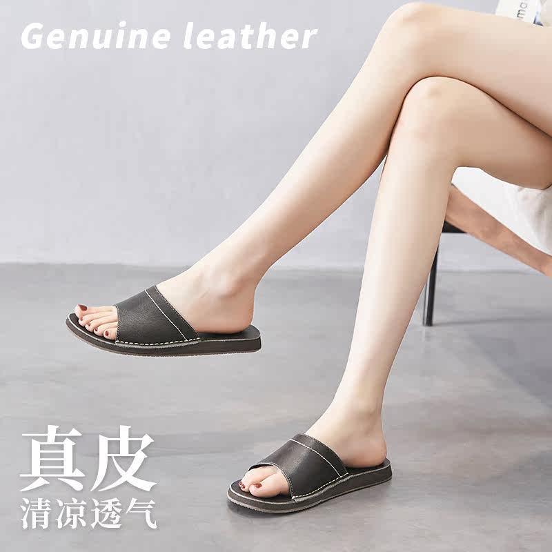 Sandals and slippers 2022 new women's outer wear leather slippers fashionable and comfortable summer flat-bottom flip-flops full cowhide