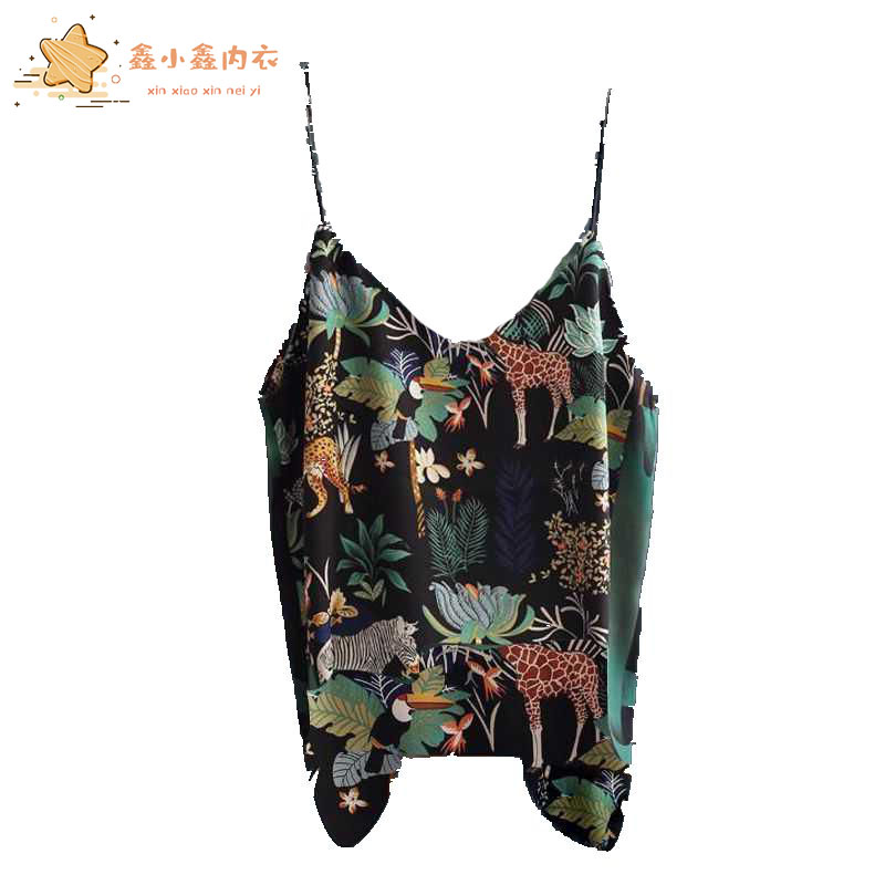 Printed sling picture color lace vest Red Lace vest Green Lace vest Black animal pattern sling Large discount