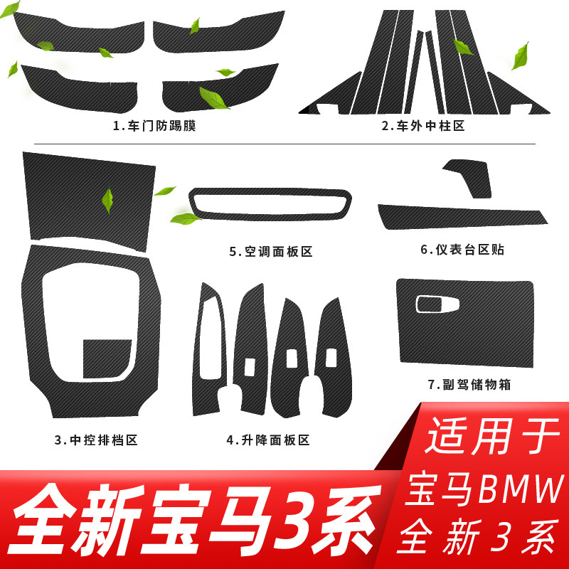 Suitable for BMW20-21 new 3 series 325li interior modified carbon fiber stickers anti-kick pad gear decorative film