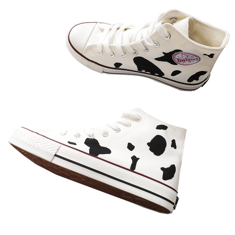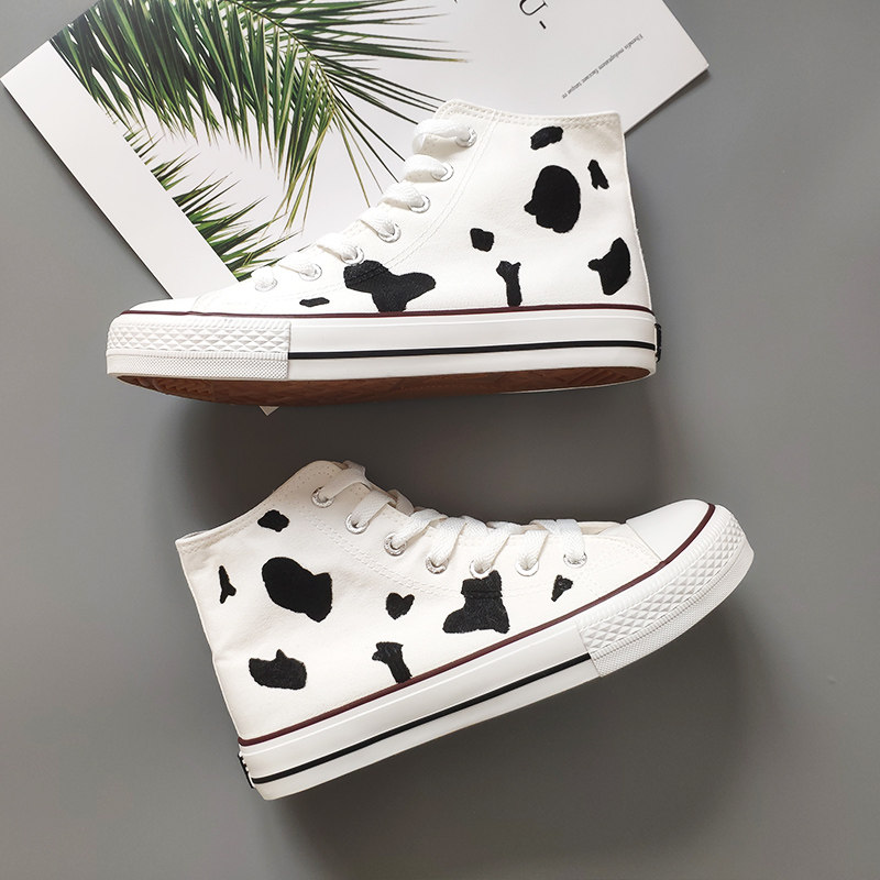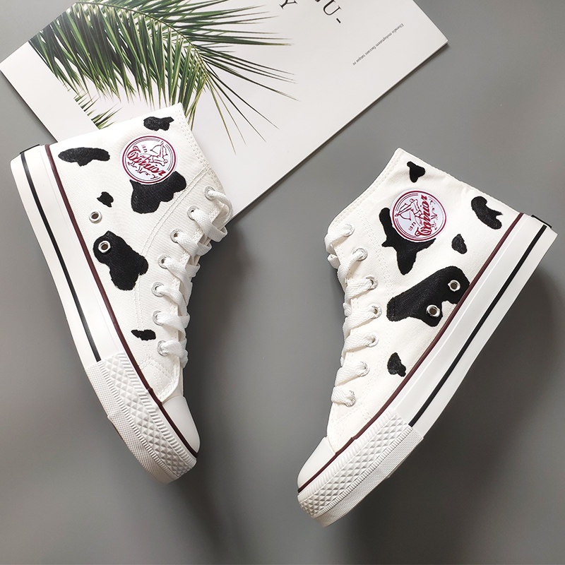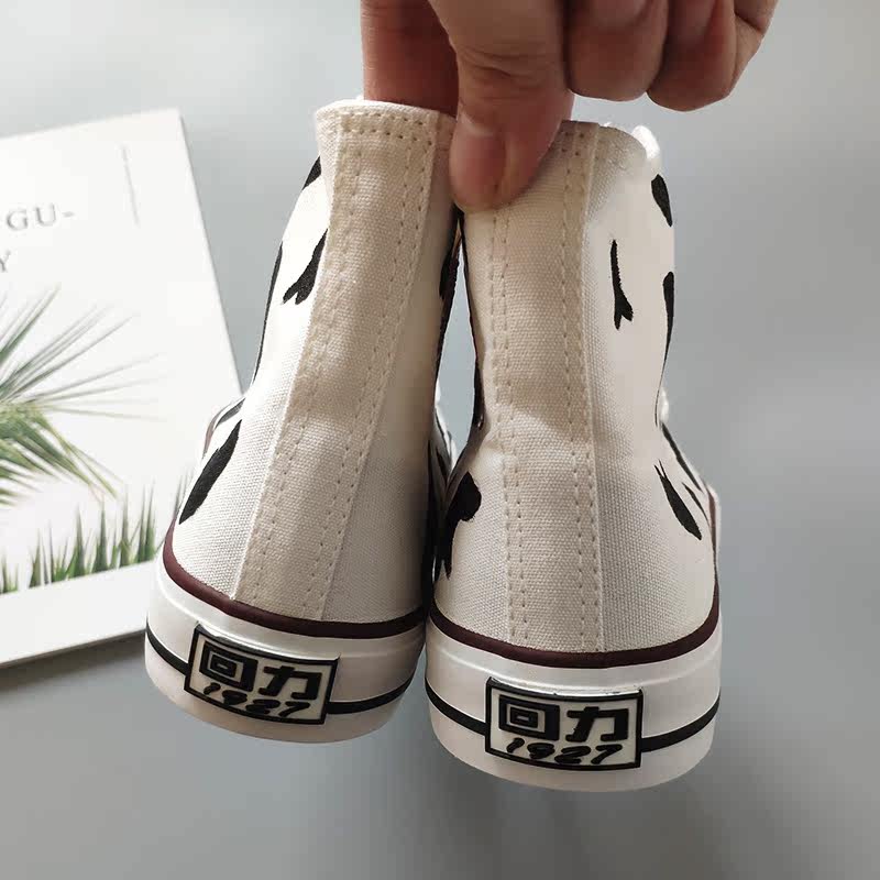 Pull back high tube men's and women's milk shoes Japanese canvas shoes ow joint name cherry blossom burst change hand-painted cow peaches are ripe
