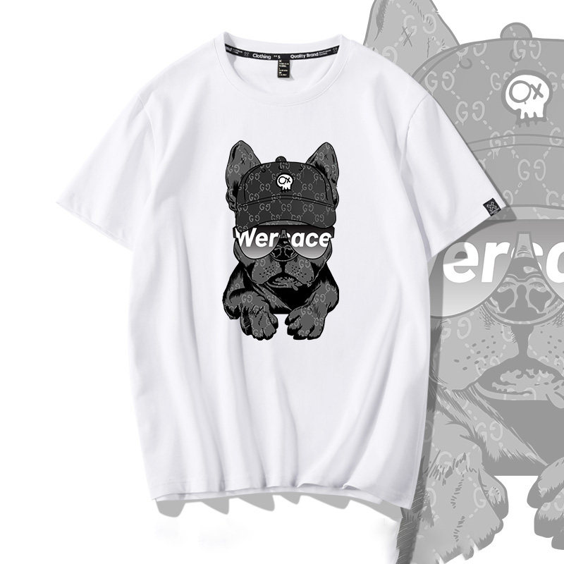 Summer ice silk T-shirt men's short-sleeved large size printing loose trend sports top pure cotton casual T-shirt bottoming shirt