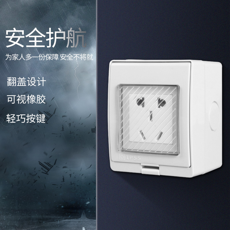 Outdoor waterproof five-hole socket RTL-FH 10A bathroom powder room small 5-hole rainproof open-mounted power socket