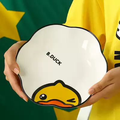 B Duck little yellow duck conch plate Children's tableware special-shaped personality creative ins net red style good-looking duck duck plate