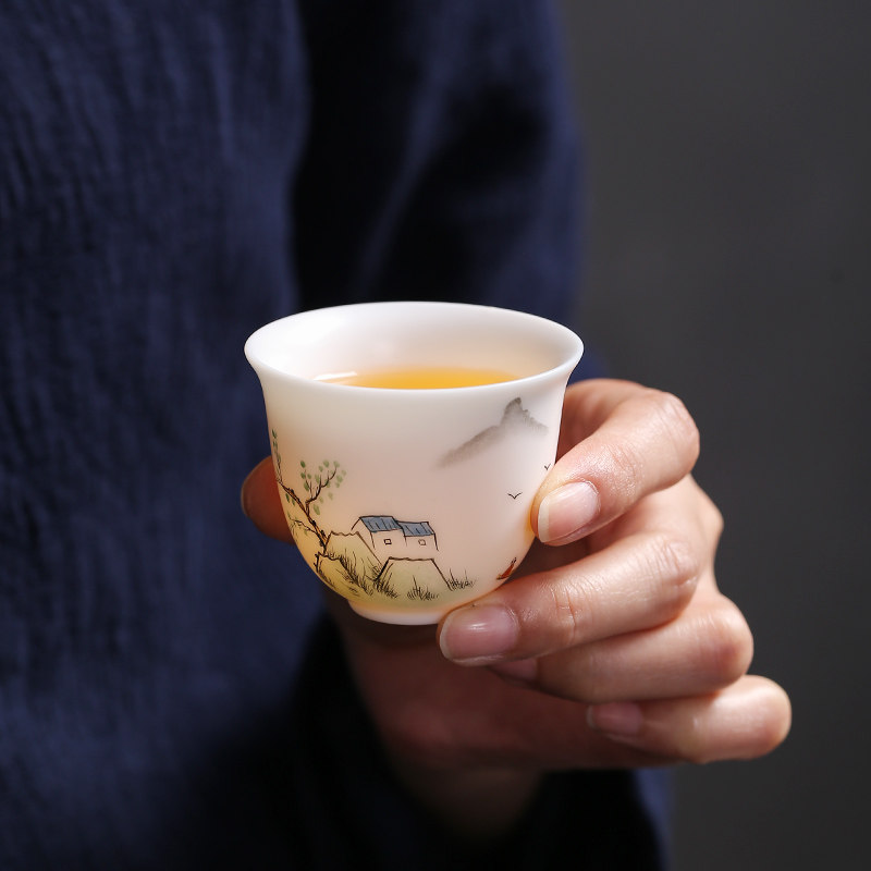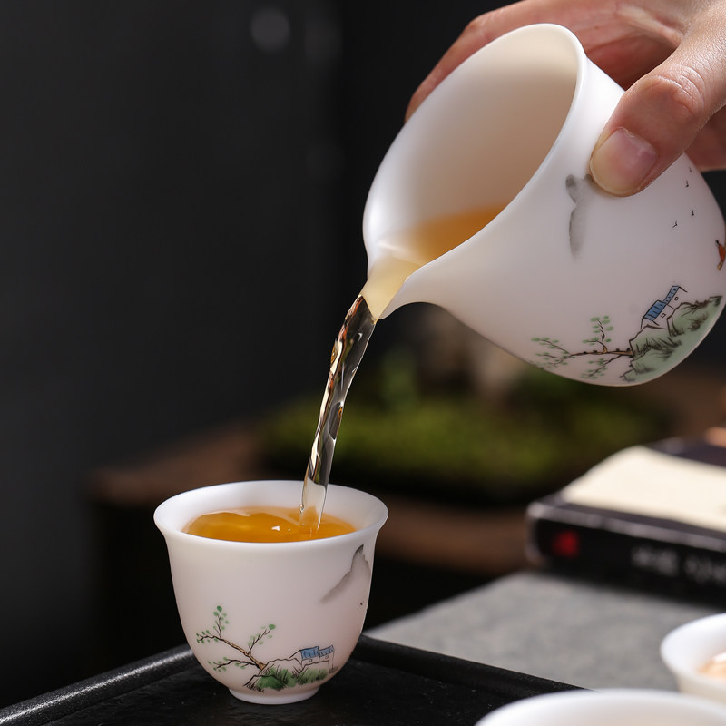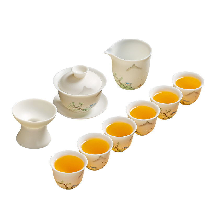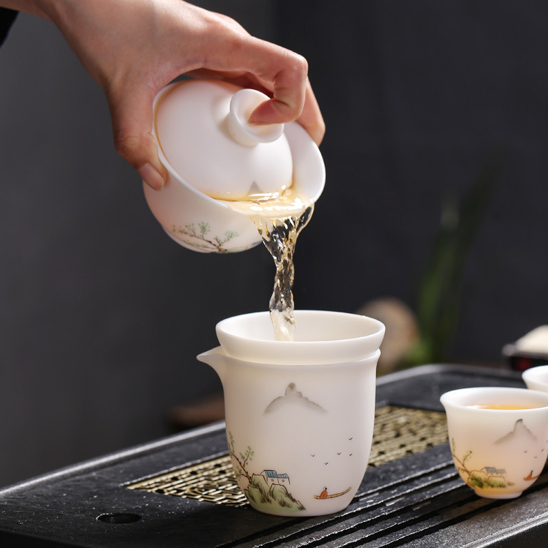 Dehua Goat Fat Jade Porcelain White Porcelain White Porcelain Vegetarian Fever Tea Furniture Set Group Home Living Room Hand-painted Cover Bowl Ceramic Tea Art Tea tea