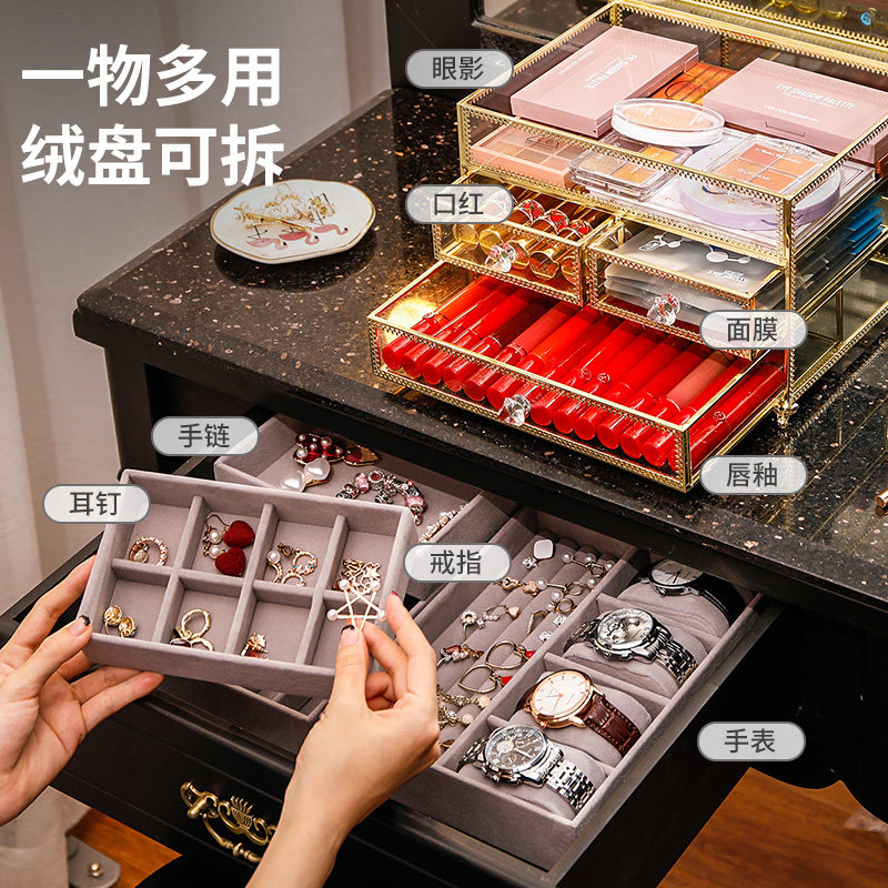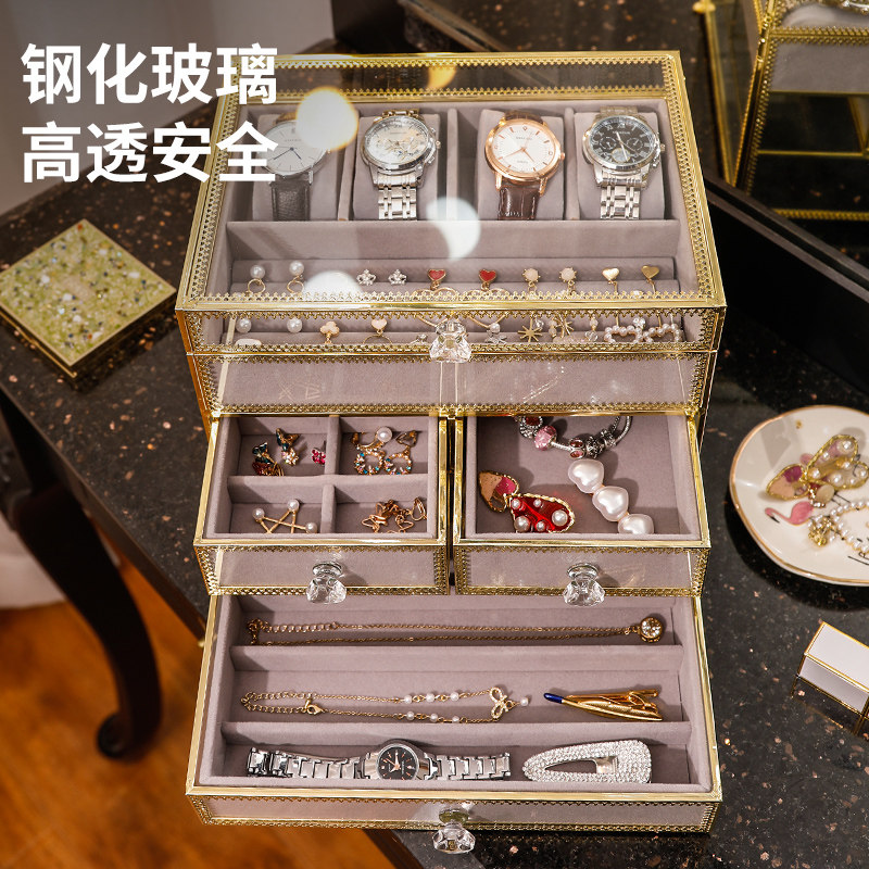 Net red dustproof jewelry box earring storage box desktop stud earrings storage artifact large capacity light luxury watch box European-style