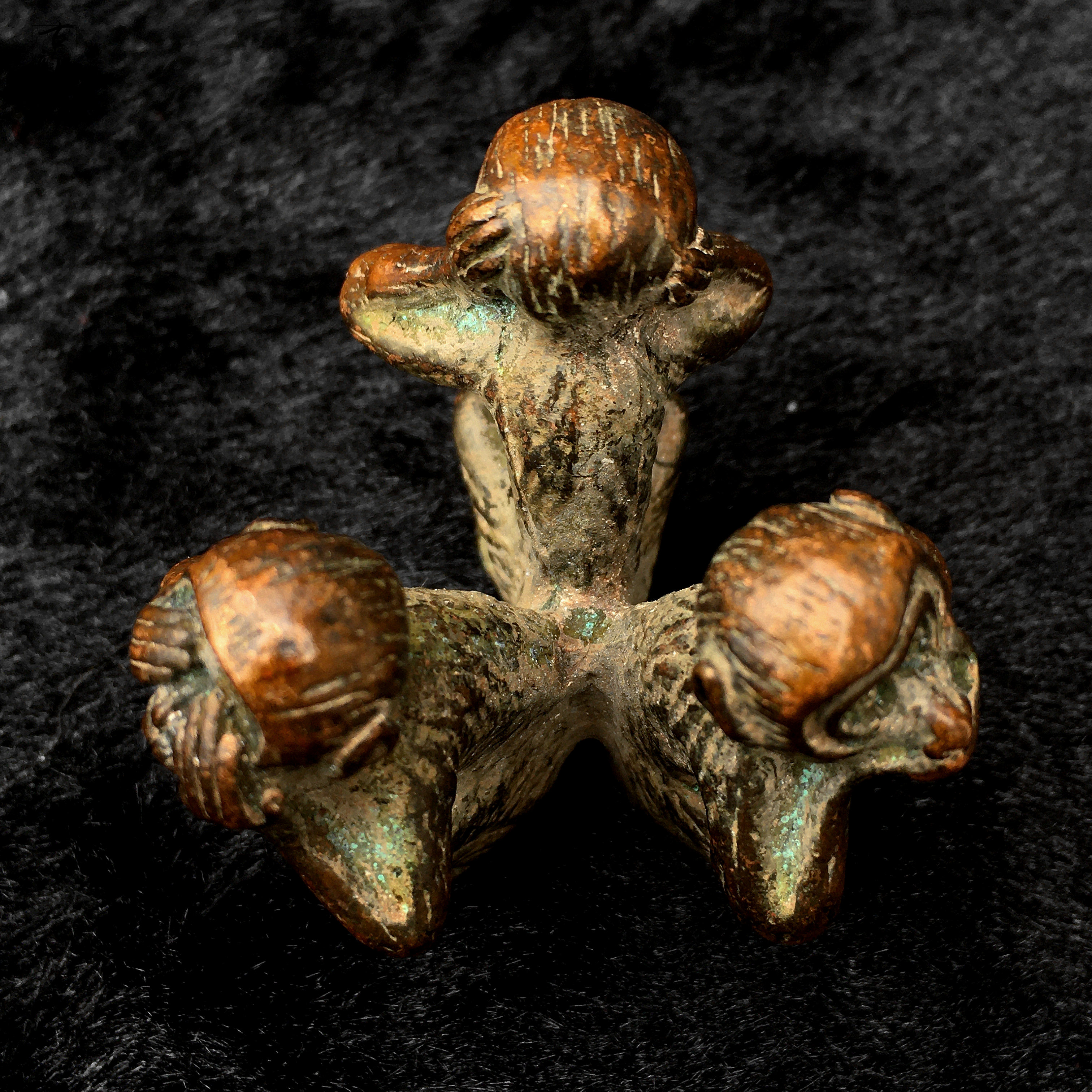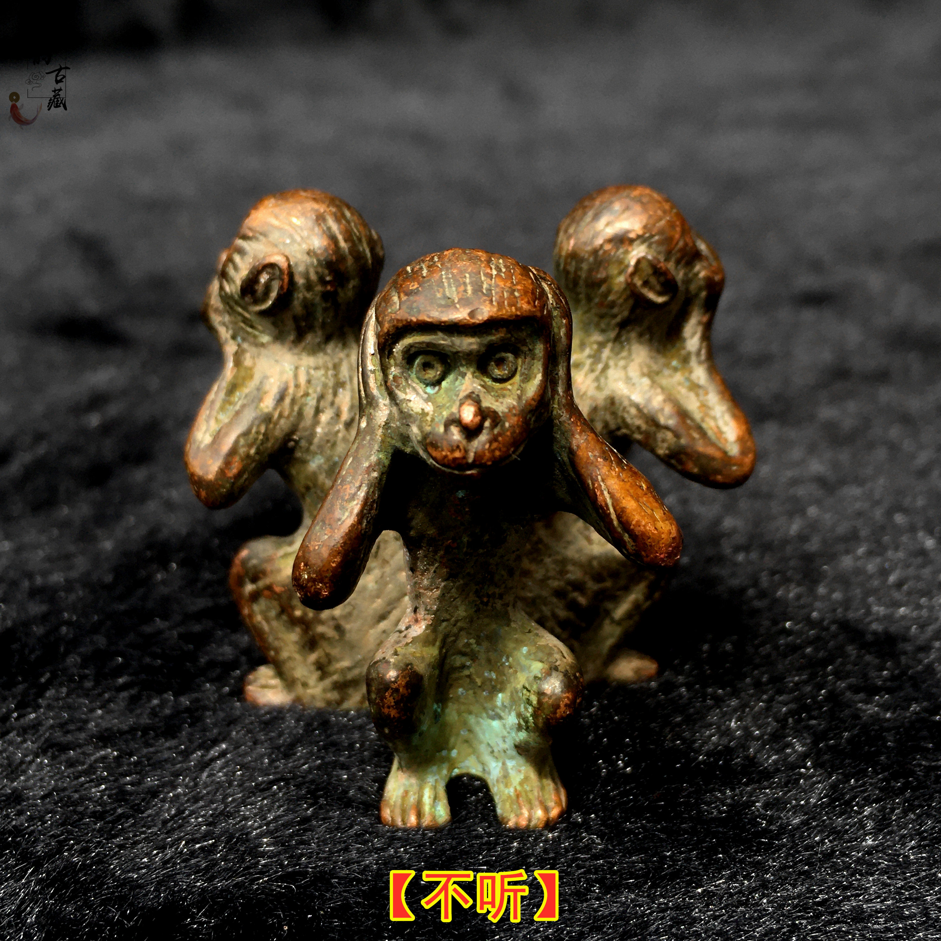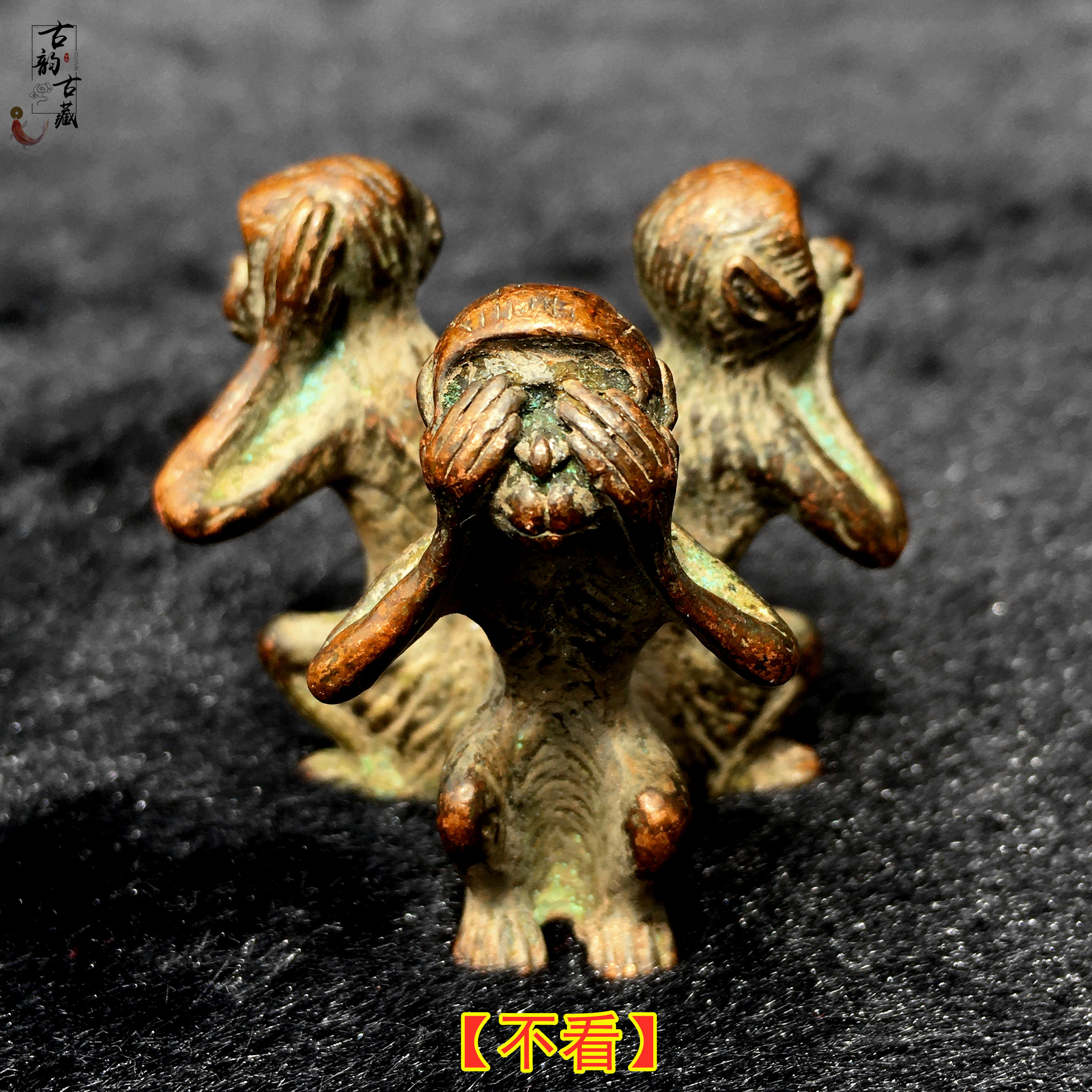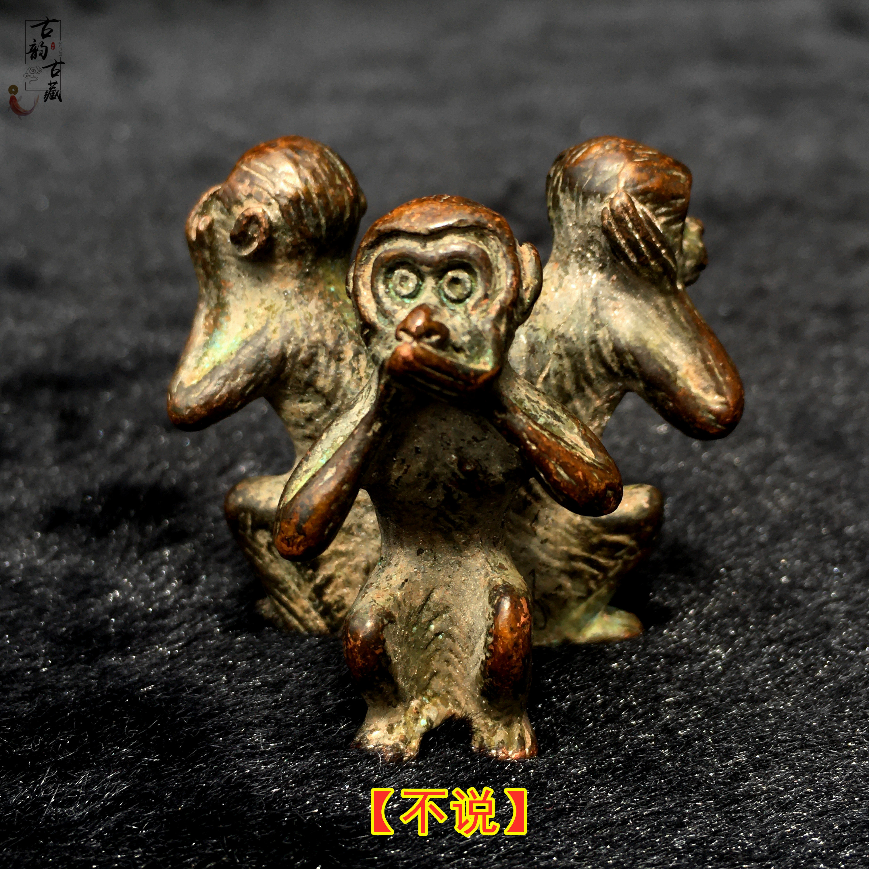 Antique old Three-nosed monkey tea spotting piece antique alloy copper plated without listening not to say monkey to decorate no Monkey