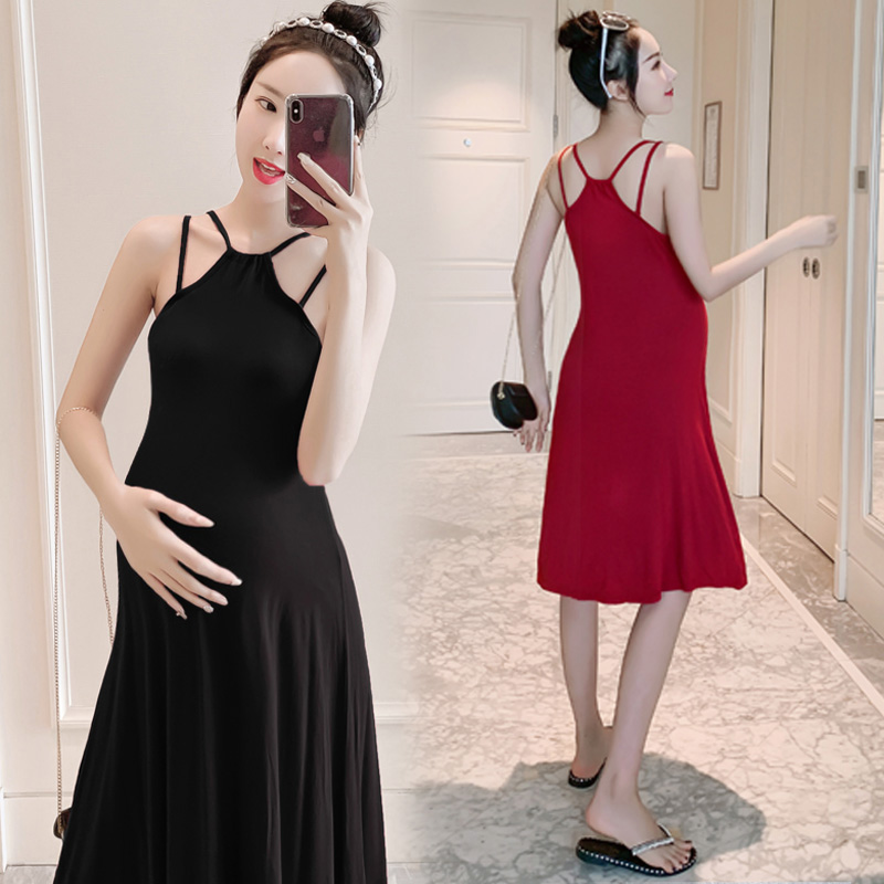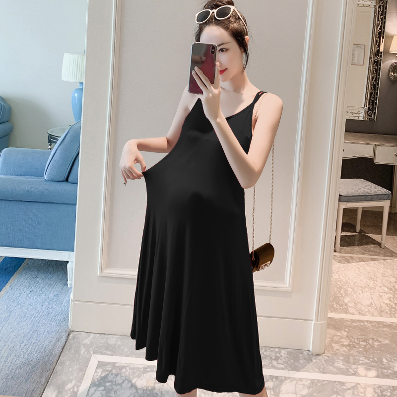 Modale pregnant woman harnesses the Han version of a Han version of a slim medium long version of the vest skirt Two sides wearing an elastic A-character dress