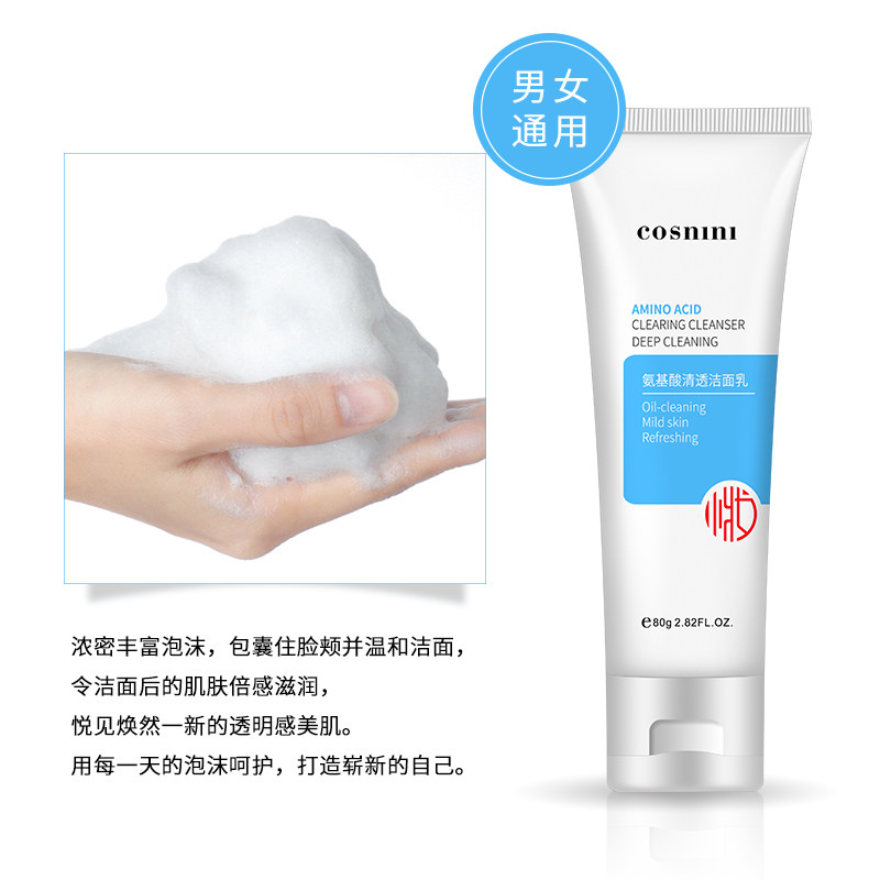 COSNINI Small Makeup Amino Acid Facial Cleanser Deep Clean Pore Firming Refreshing Daily Men's and Women's Facial Cleanser