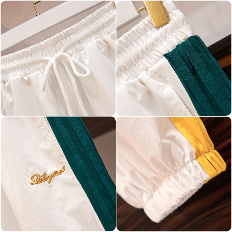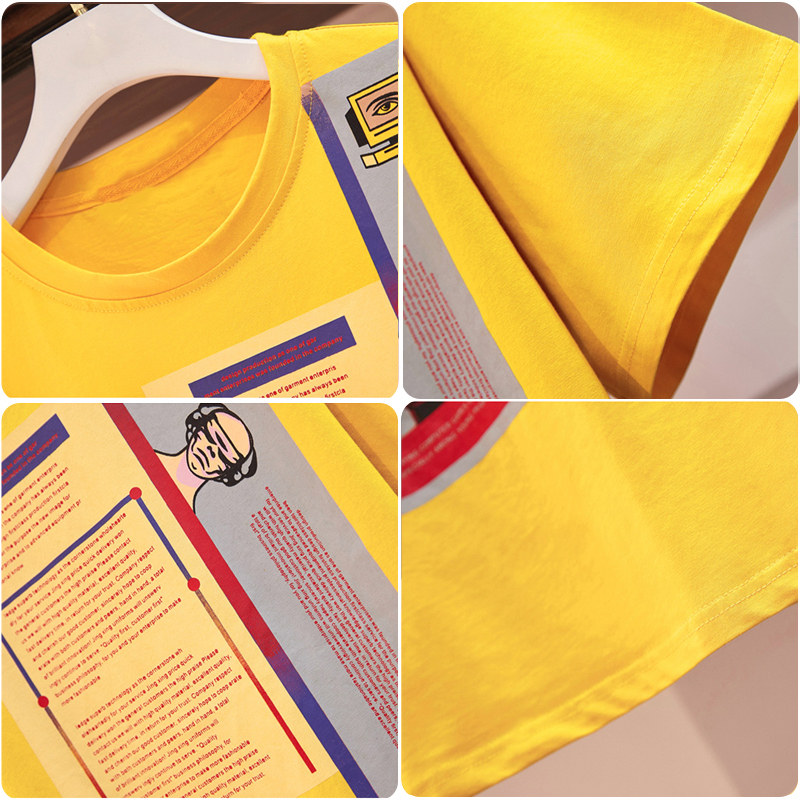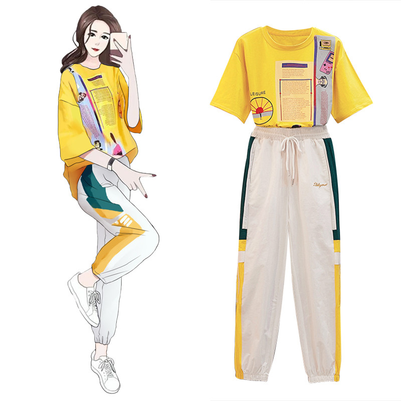 Yellow short T white pants two-piece blue short T white pants Two-piece black short T white pants Two-piece dark blue short sleeve top pants Two-piece light blue short sleeve top pants Two-piece white short sleeve T-shirt