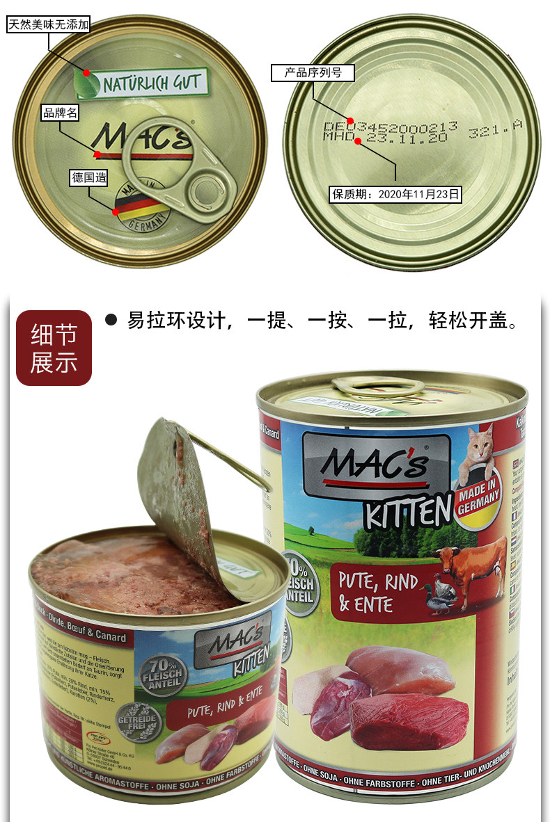 Cat Island Pet German Macs Megherz Grain Free Low Sensitive Adult Kittens Whole Cat staple food 200g canned wet food