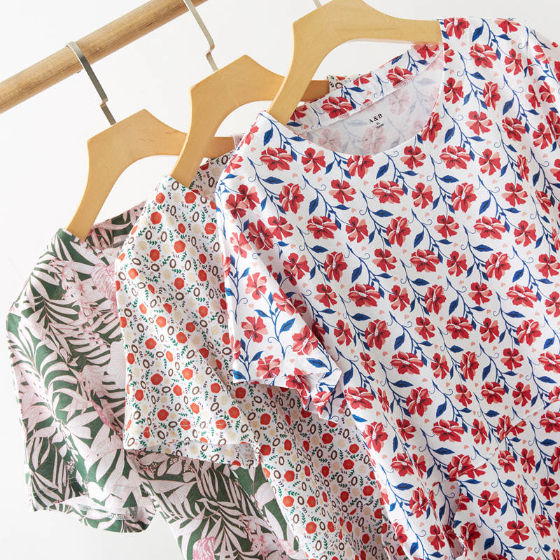 AB Home Sleeping Dress Woman Summer Pure Cotton Short Sleeve Pyjamas Thin Loose large size for casual outwear for foreign dress H358