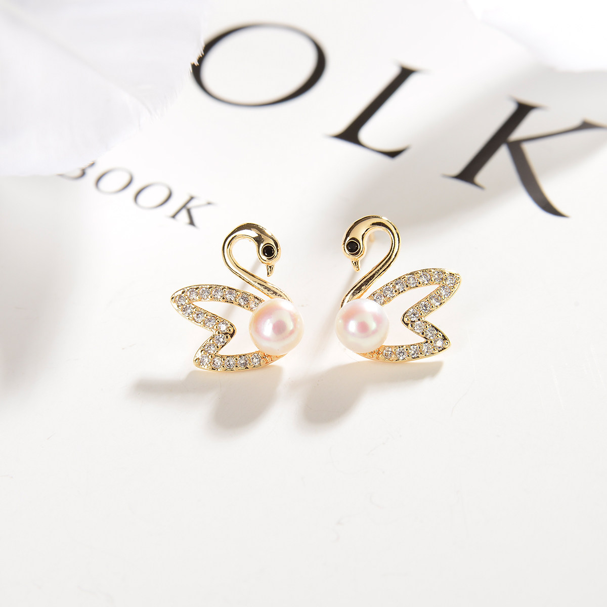 O-STONE Lifetime One stone Natural Freshwater Pearl Little Swan ear needle Niche design Copper gold plated earrings