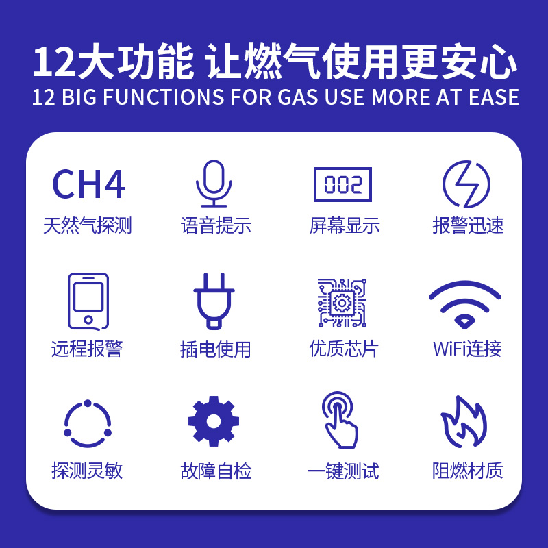 Gas alarm Household kitchen gas Gas Liquefied gas Combustible gas leak WiFi intelligent detector
