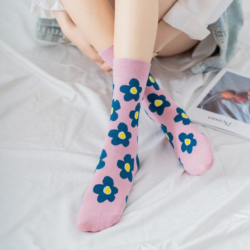 Nuts Mummy Mimi Elegant Breeze Little Flower Pattern Midbarrel Socks Ins Chaunets Red Korea Girls Long Sox Children's Sox Children
