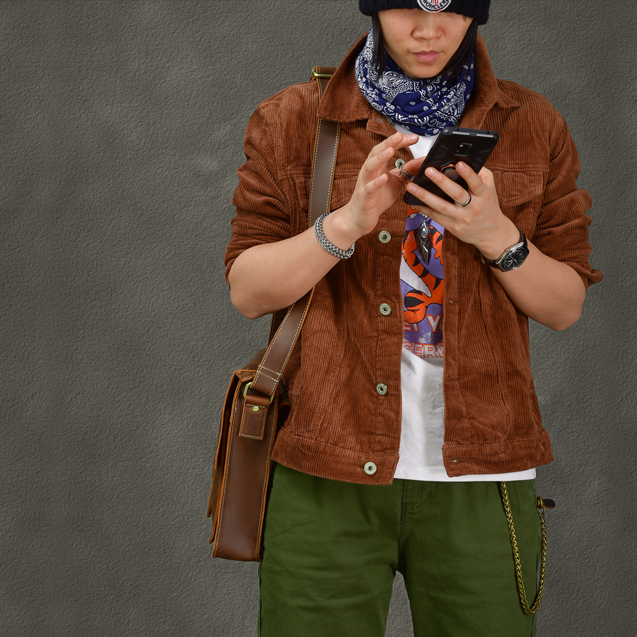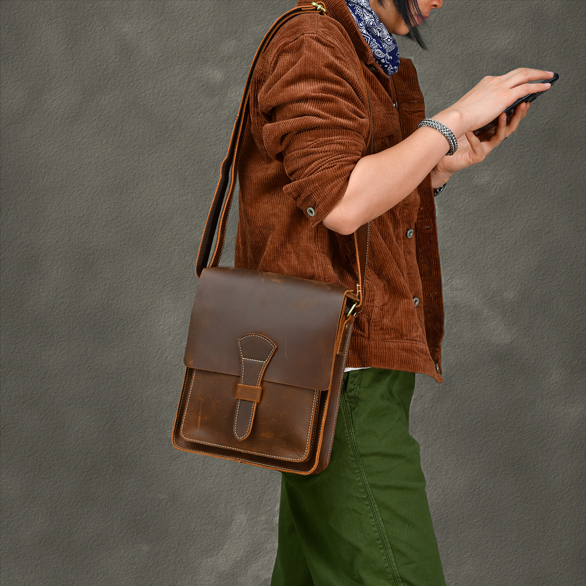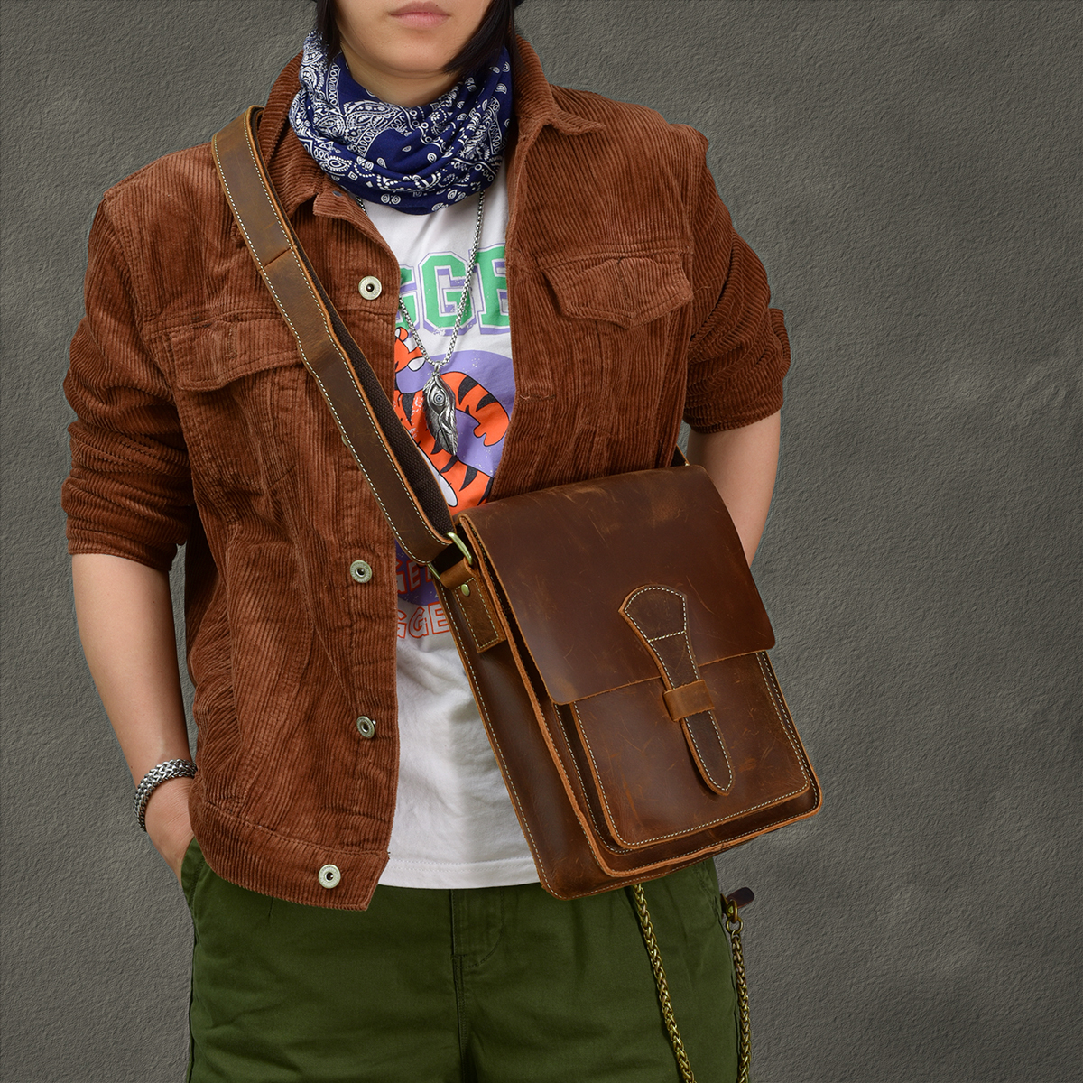 24 Street Quality Retro Crazy Mapleather Men's Slanted Satchel Bag of European and American Wind Bull Leather small square bag Single-shoulder mobile phone bag