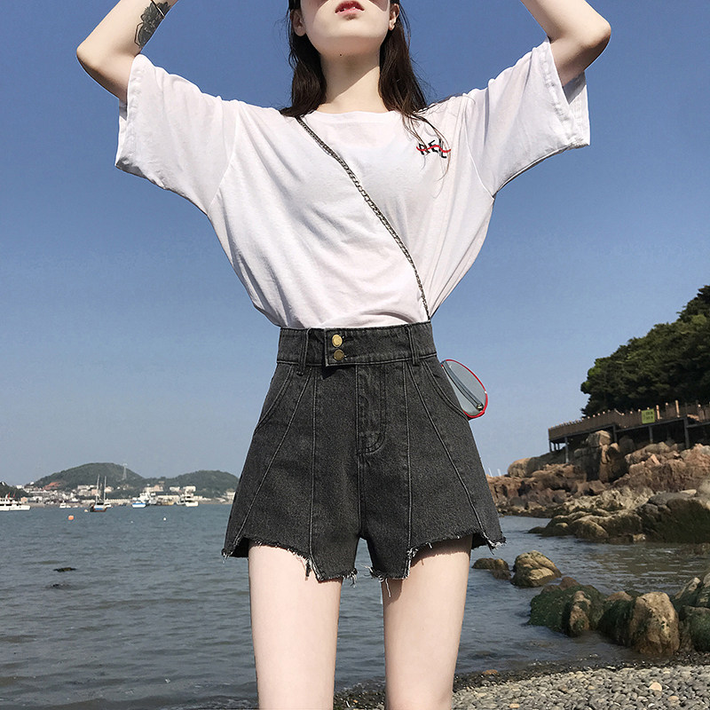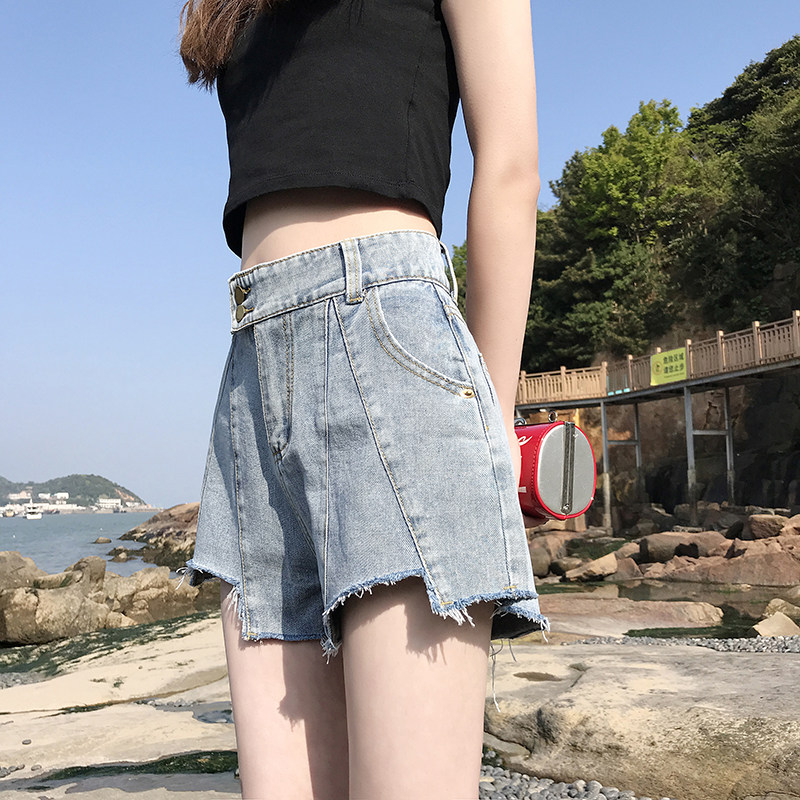 South Korean high-waist denim shorts female summer 2022 new loots slim and thin with broad leg a word 100 lap hot pants Chains