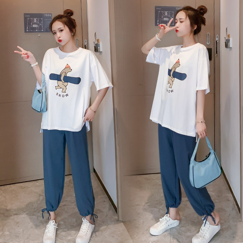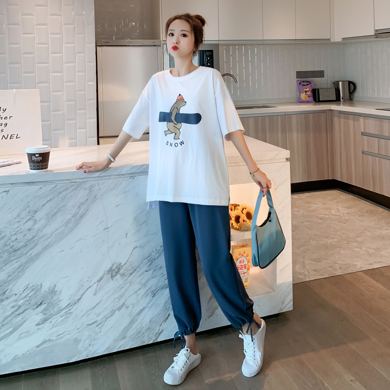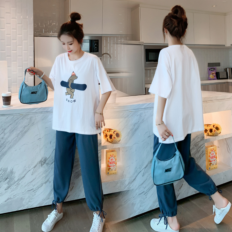 Pregnant Woman Summer Clothing Suit 2021 New Summer Out-Of-The-Boomer Fashion summer Short sleeves Net Red Summer Two sets