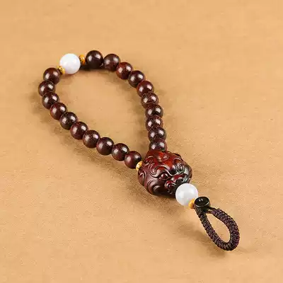 Small leaf red sandalwood brave car keychain pendant rope chain Dragon and Tiger safe fortune high-end creative men and women hanging jewelry