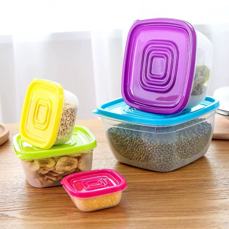 Fresh-keeping box can be stacked rainbow square storage box plastic refrigerator fruit and vegetable kitchen storage box 7-piece set