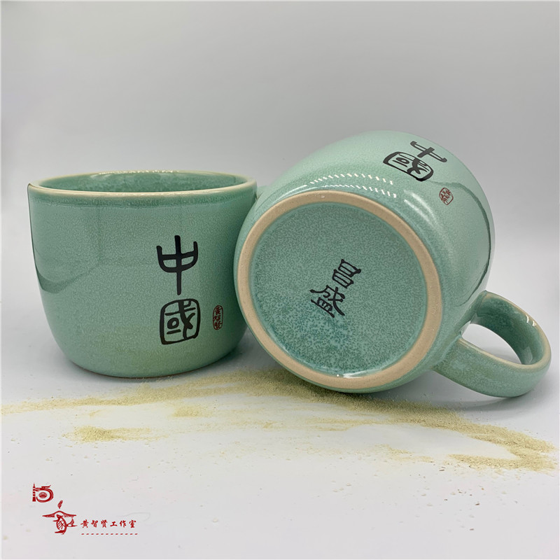 Zhixian Sister hand-written China Changsheng imitation Ru Kiln Sky Blue wide mouth mug