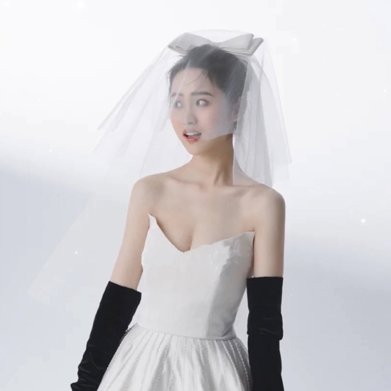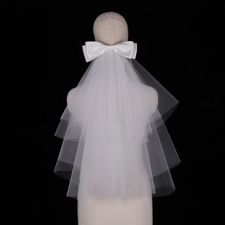 Han Style Sweet butterfly knot Princess Bride wedding head dress white multilayer short style Makeup Styling Brigades shooting Shadow yarn