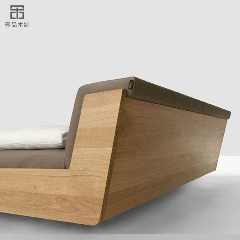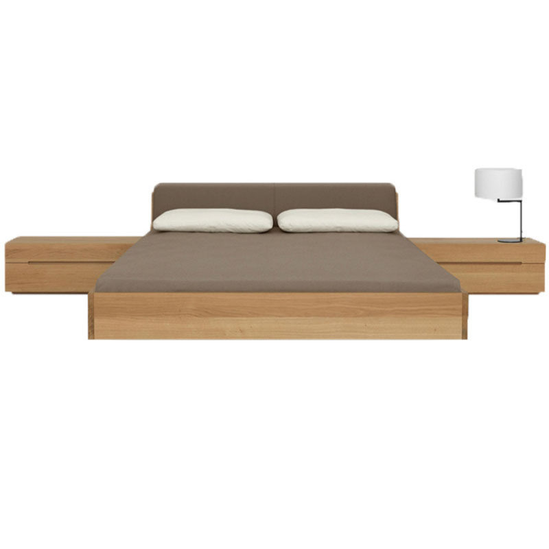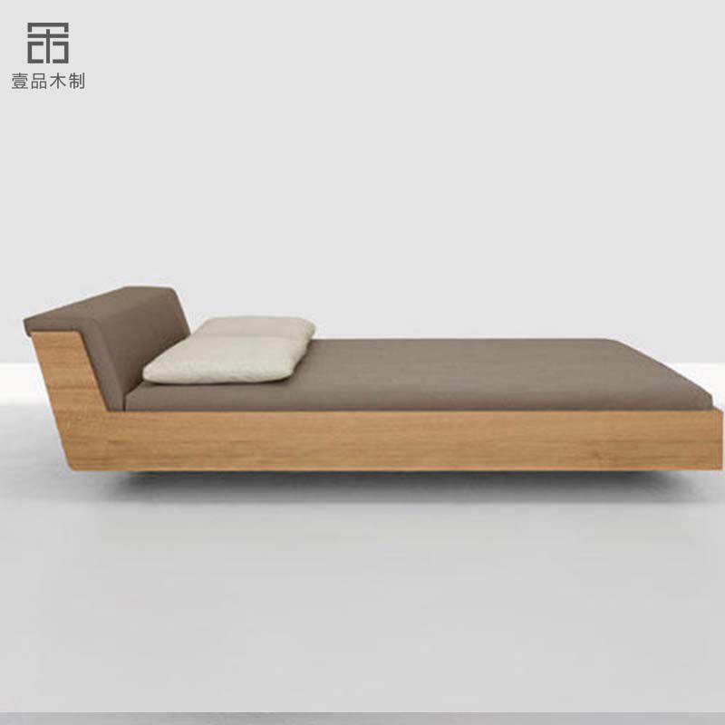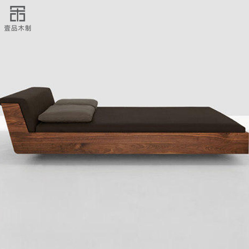 Nordic solid wood bed suspended tatami bed Japanese oak double bed simple black walnut bedroom low bed can be customized